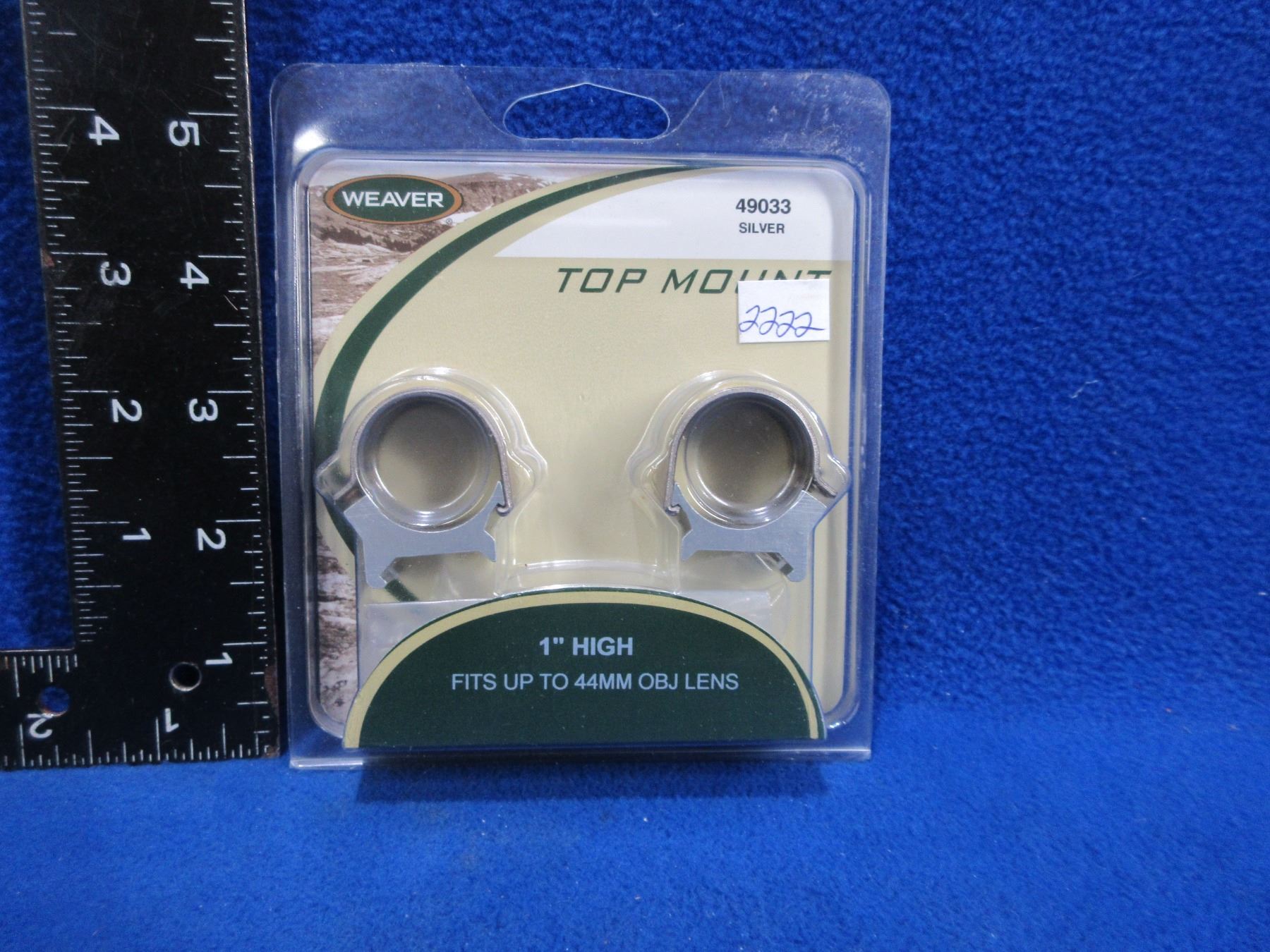 Lot 2222 Weaver Top Mount 1" High Rings, Silver - Fits up to 44mm OBJ Lens