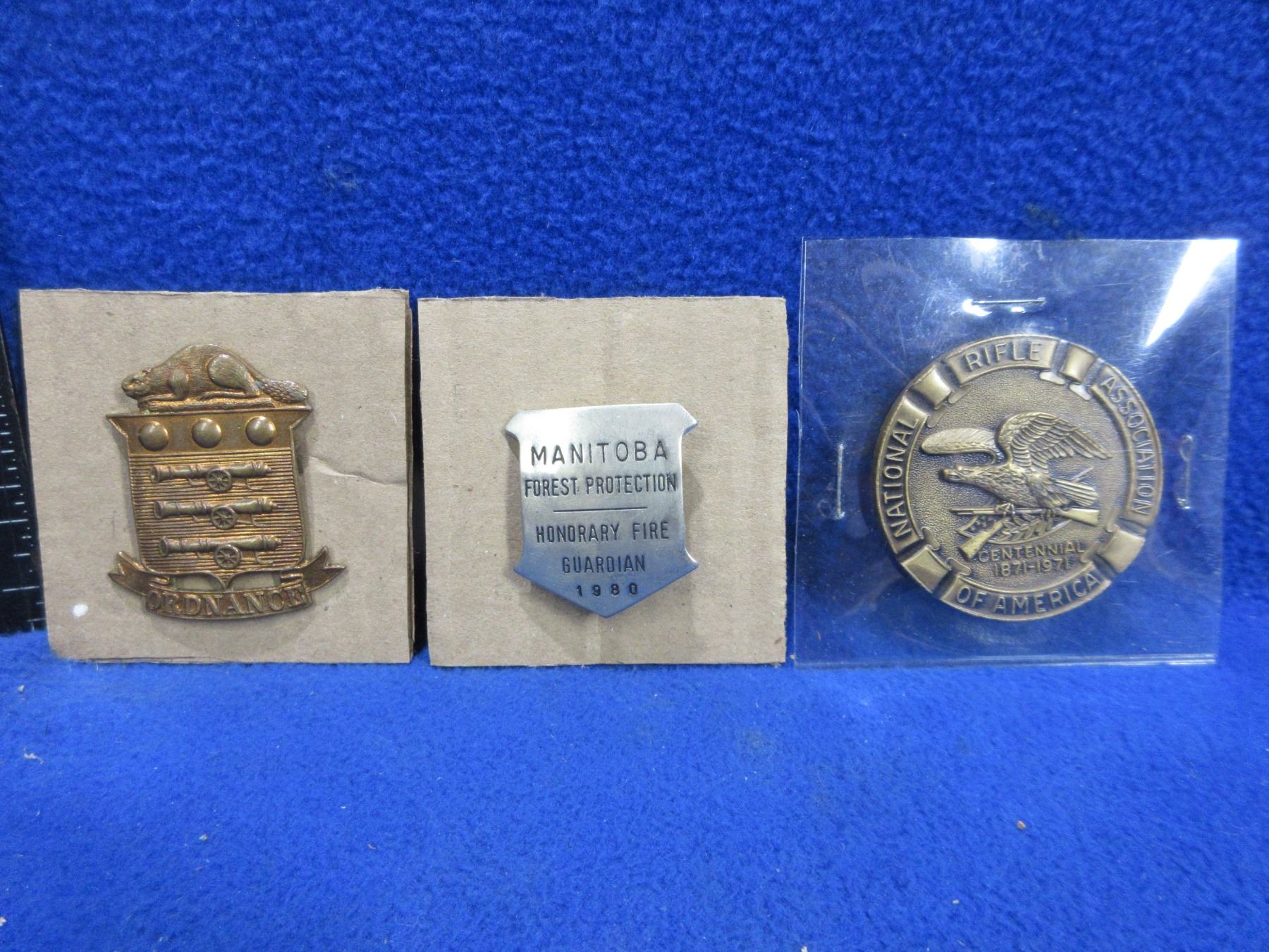 Lot 2294 Royal Canadian Ordnance Cap Badge, Manitoba Forest Protection Badge, NRA Medal