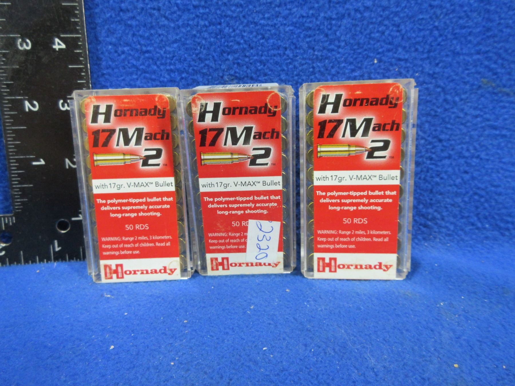 17 Mach 2 17gr V-Max Hornady (Pick Up or Ship by UPS Only) Cartridges - 3 Boxes of 50