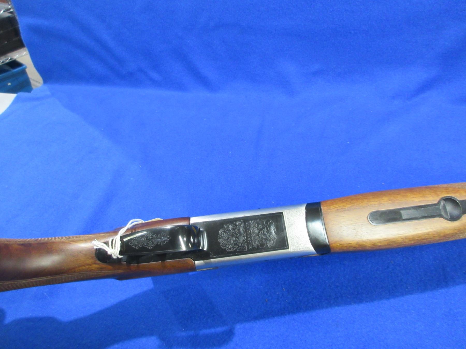 Non-Restricted - Winchester Model 91 in 12 Ga. 2 3/4" - This is a very nice shotgun in really clean condition. This is an over/under shotgun, nicely engraved action is tight and appears to be in very good working order. Vent rib barrels are 28"- vent has a dent approx 5 1/2" from muzzle, bores are very good, black finish is good to very good, has bead front sight, stock is good to very good, forearm is good to very good, length of pull is 15", butt plate good. Ser # WK236753