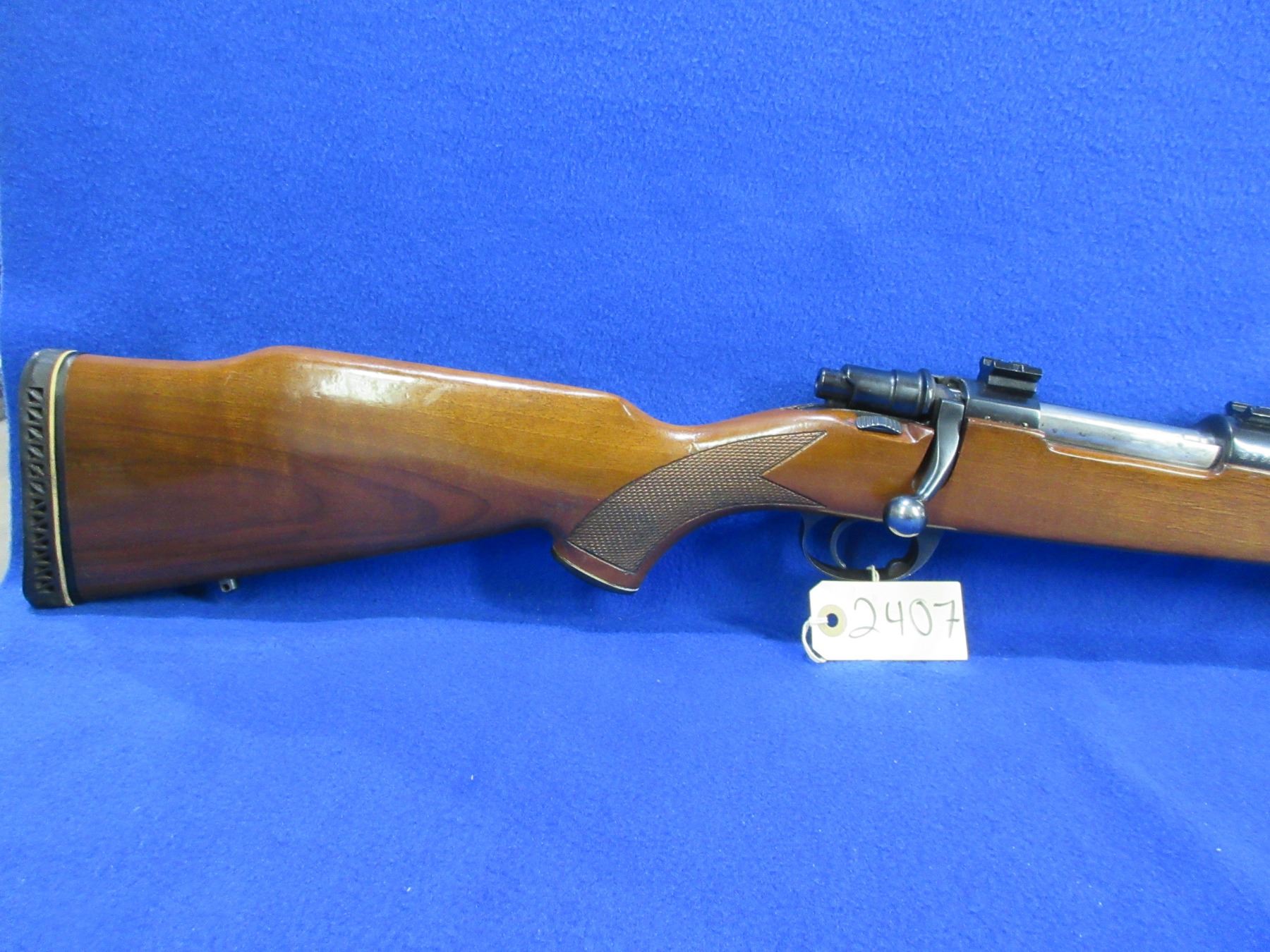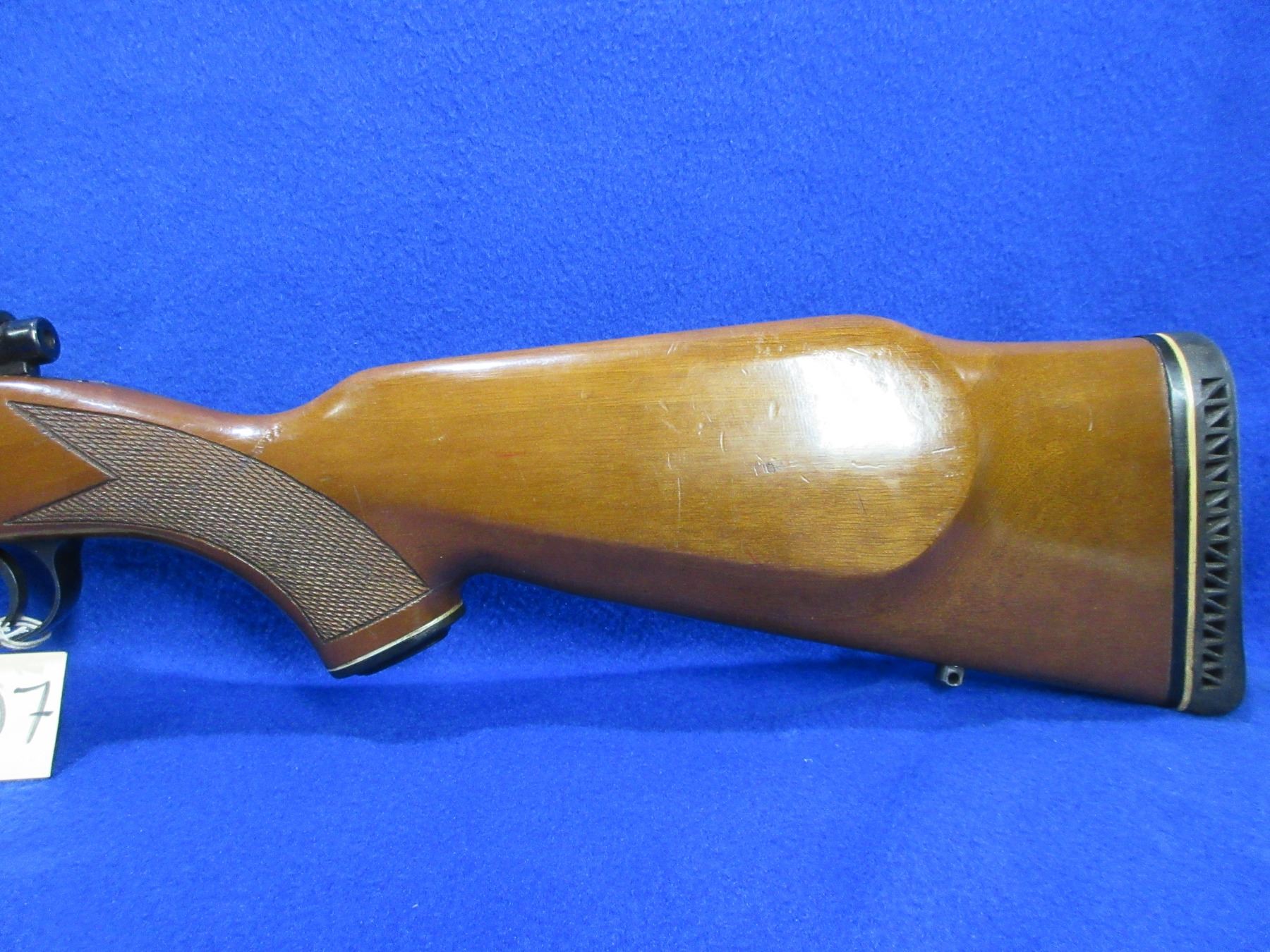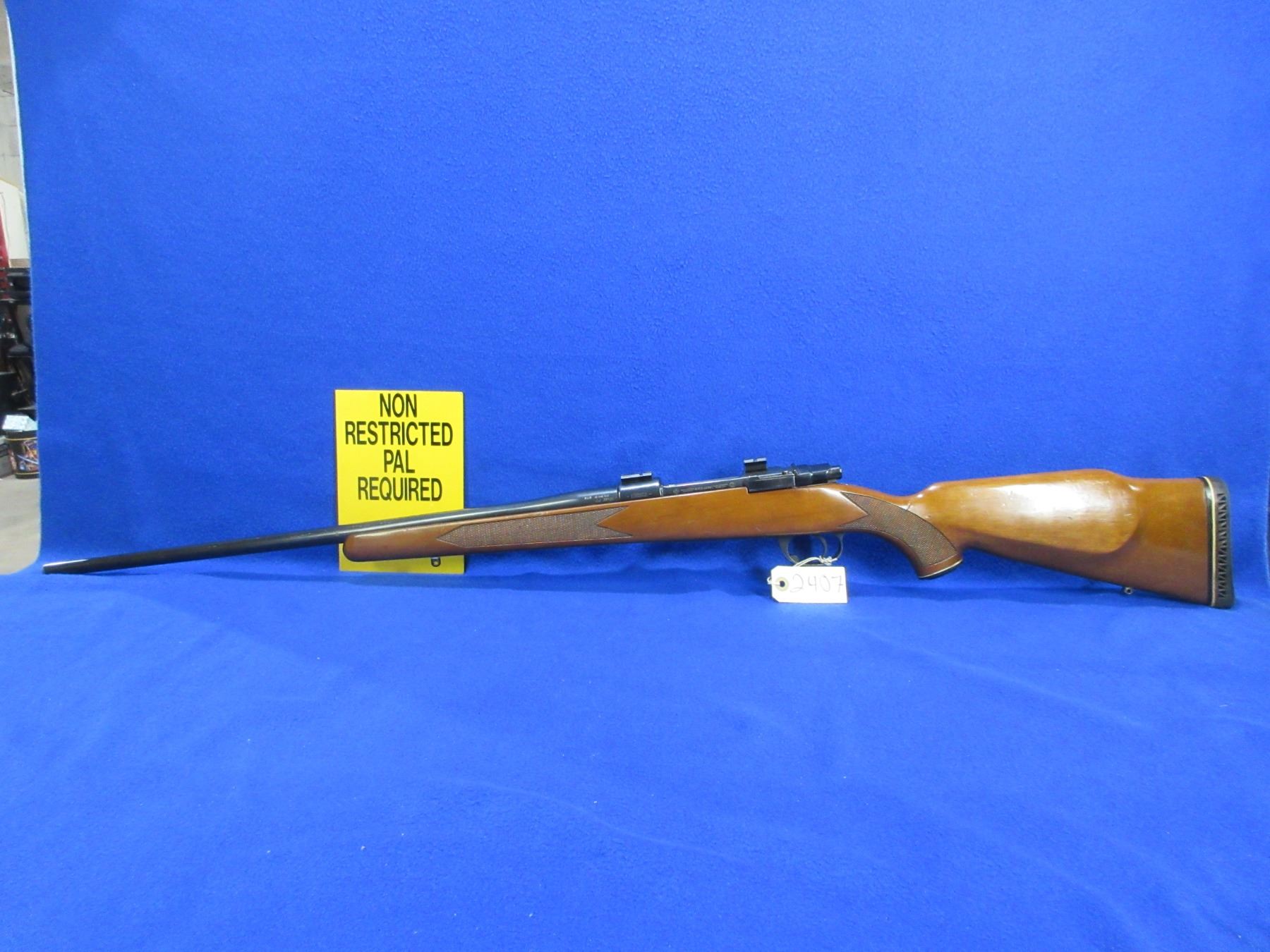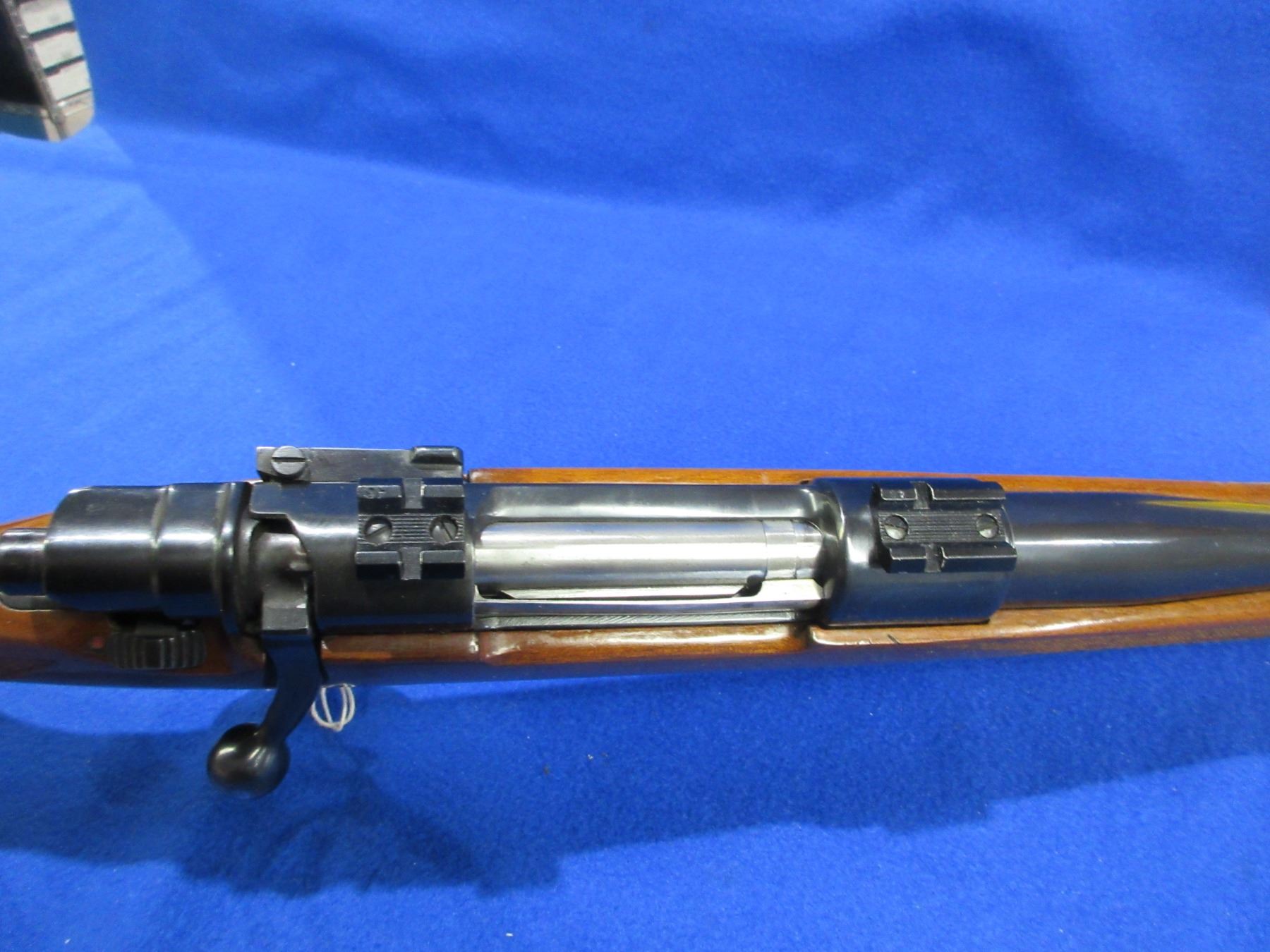 Non-Restricted - Interarms Model Mark X in 308 Norma Mag - This is a bolt action rifle with floorplate magazine, action appears to be in good to very good working order. Barrel is 23 1/2" and has been bored out from 30-06 to 308 Norma Mag, rifling is good to very good, bluing is good with a large wear patch on top of the barrel, has no sights but has Weaver style bases, stock is good with usage marks, length of pull is 14 3/4", rubber recoil pad good, comes with swivel studs. Ser # B254826
