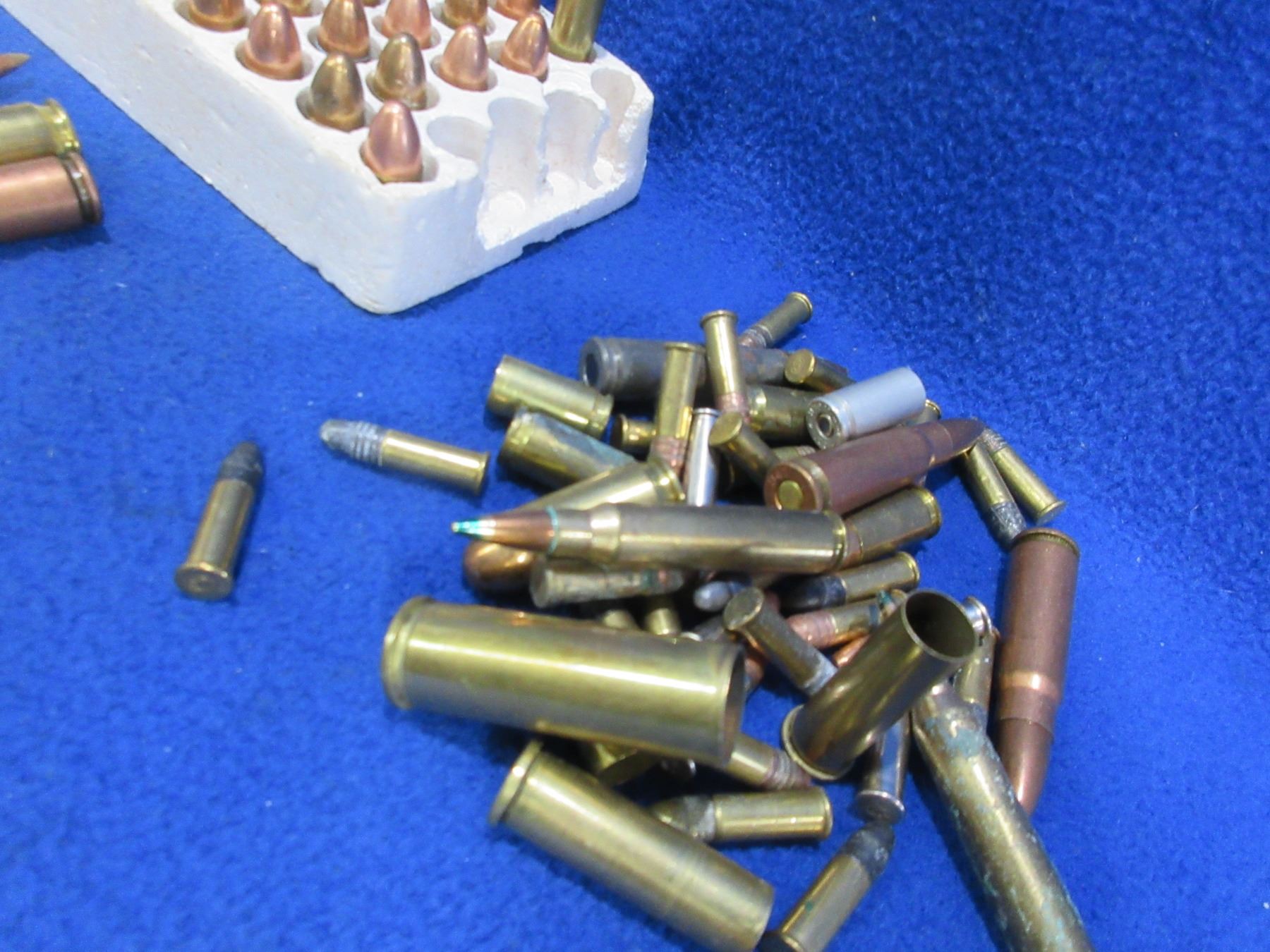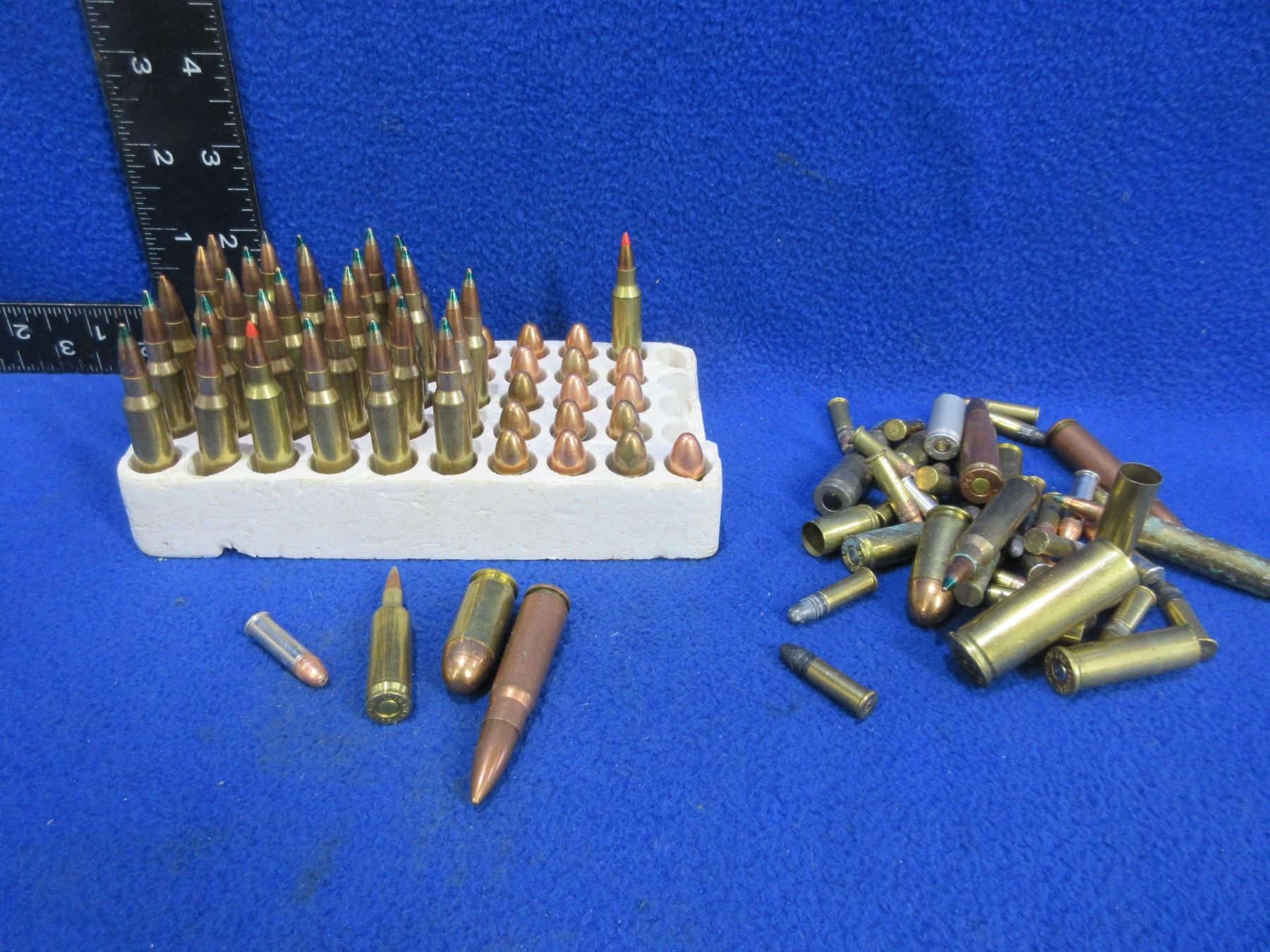 Lot of 90 Misc. Cartridges + 5 Brass (Pick Up or Ship by UPS Only) 9MM Luger, 5.56X45, 22 LR, Etc.