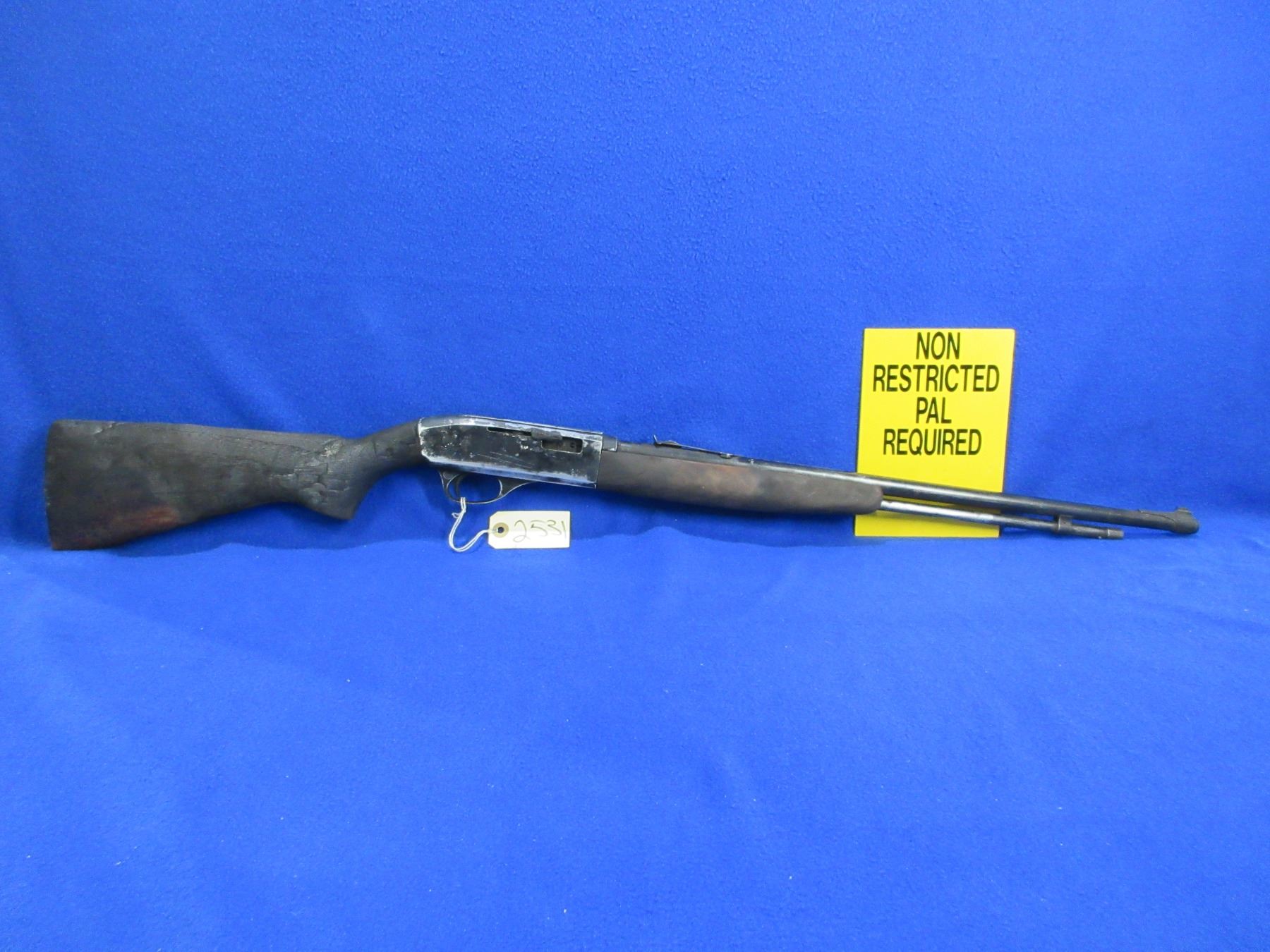Non-Restricted - Western Field Model 880A-ECH in 22 LR- This is a semi-auto rifle with tube magazine, action is in non working order as was in a fire and action will not open. Barrel is 22", rifling unknown, bluing is fair, has both sights, stock and forearm have fire damage, length of pull is 13 1/2", butt plate missing. Ser # 42785