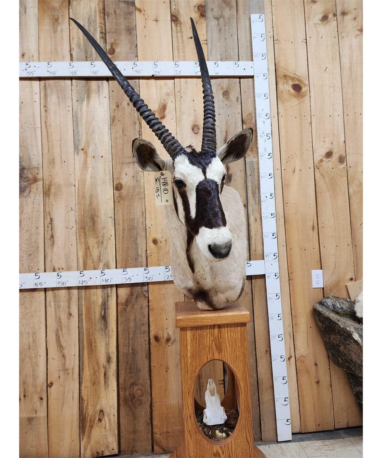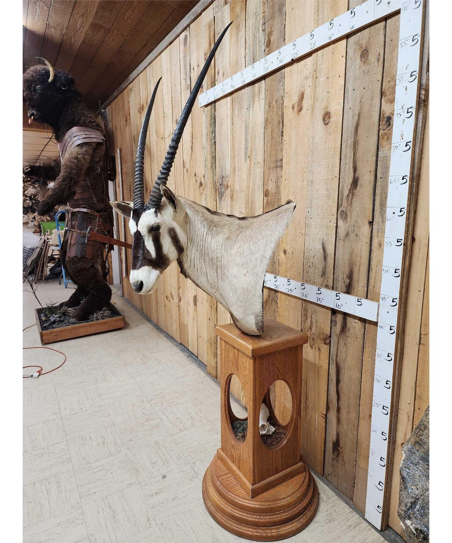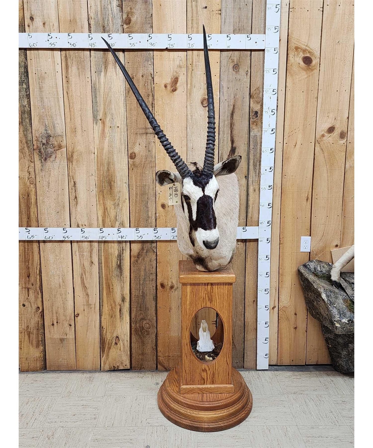 148.10 Solid mount good markings big horns over 34" on oak Pedestal