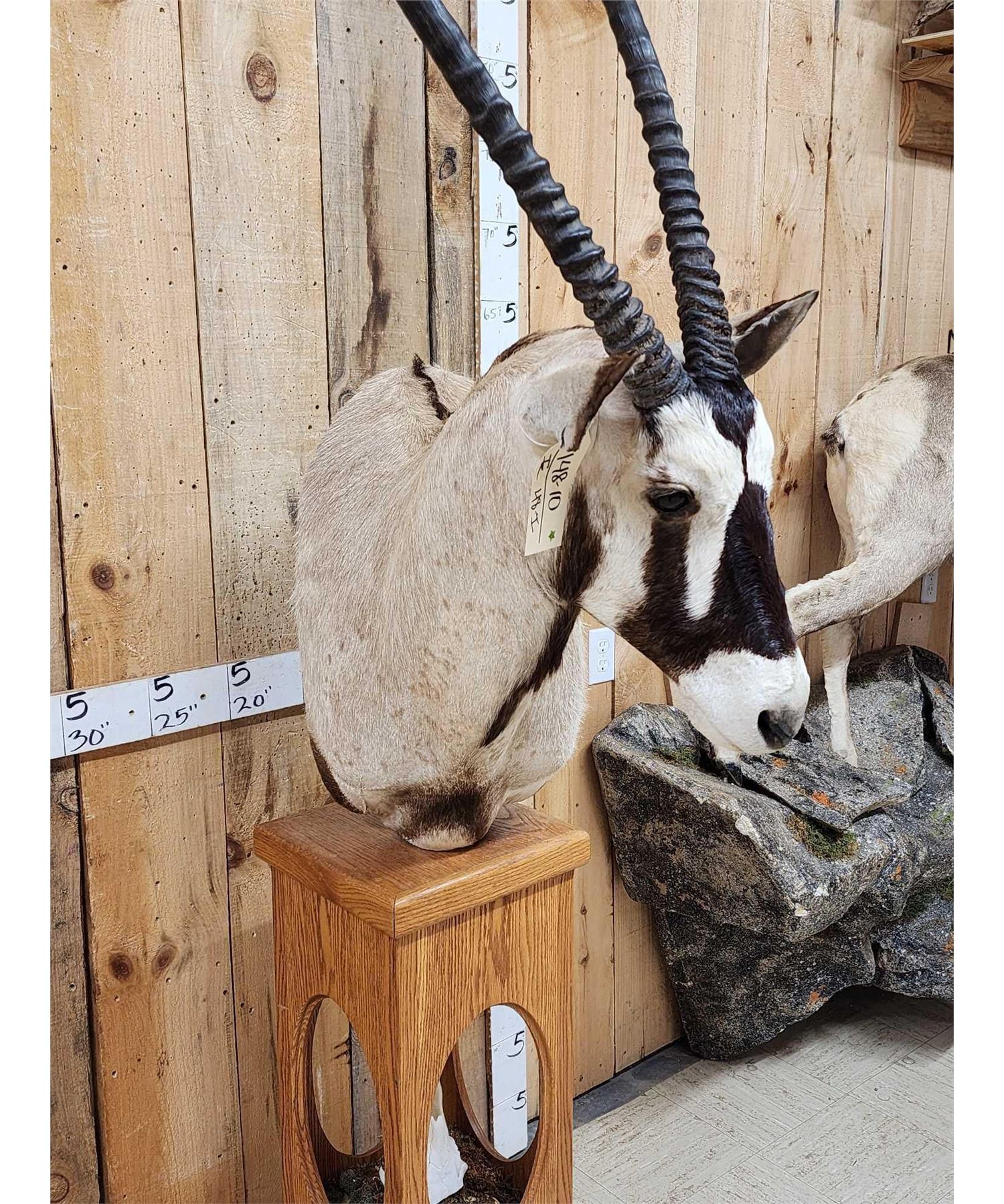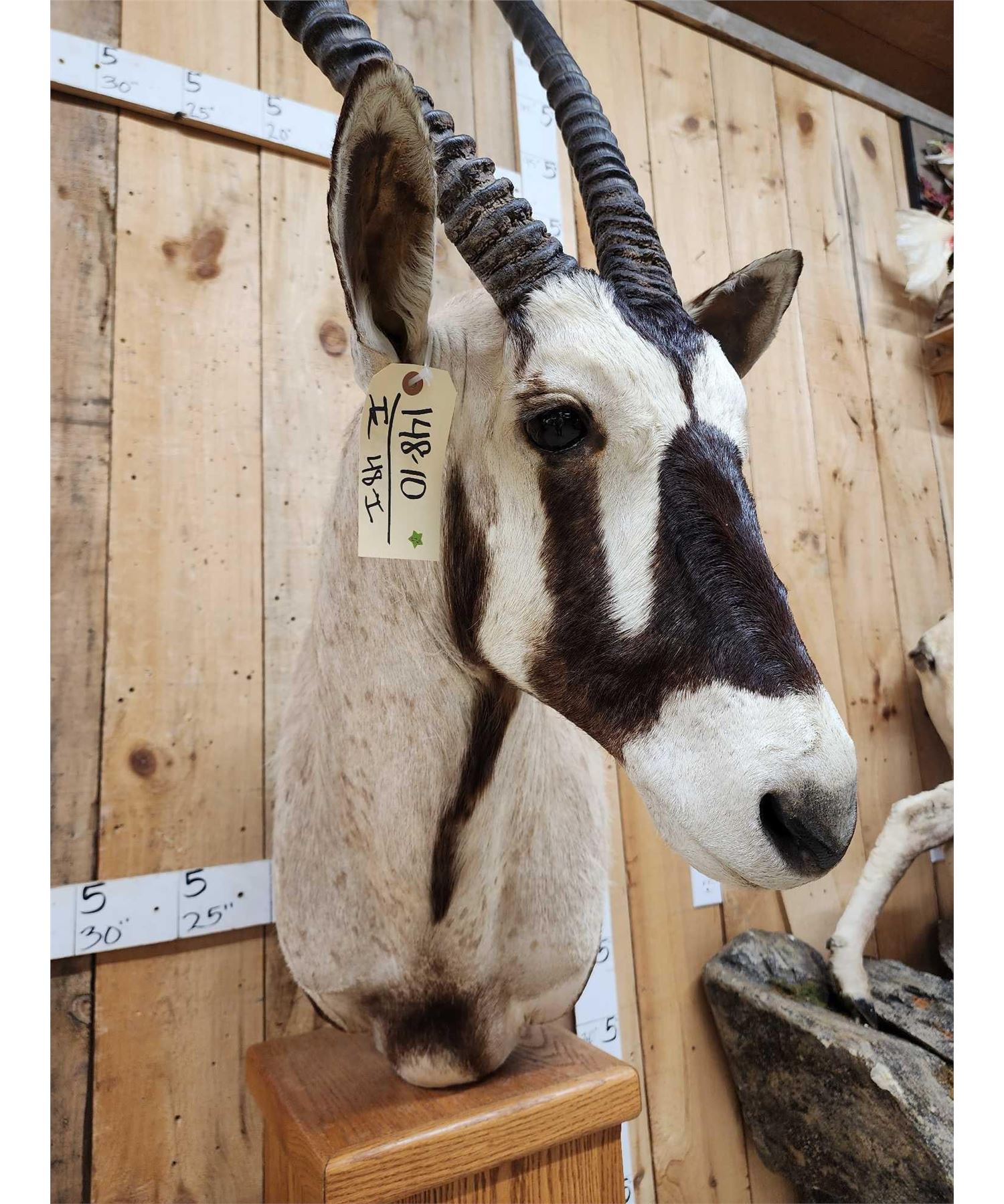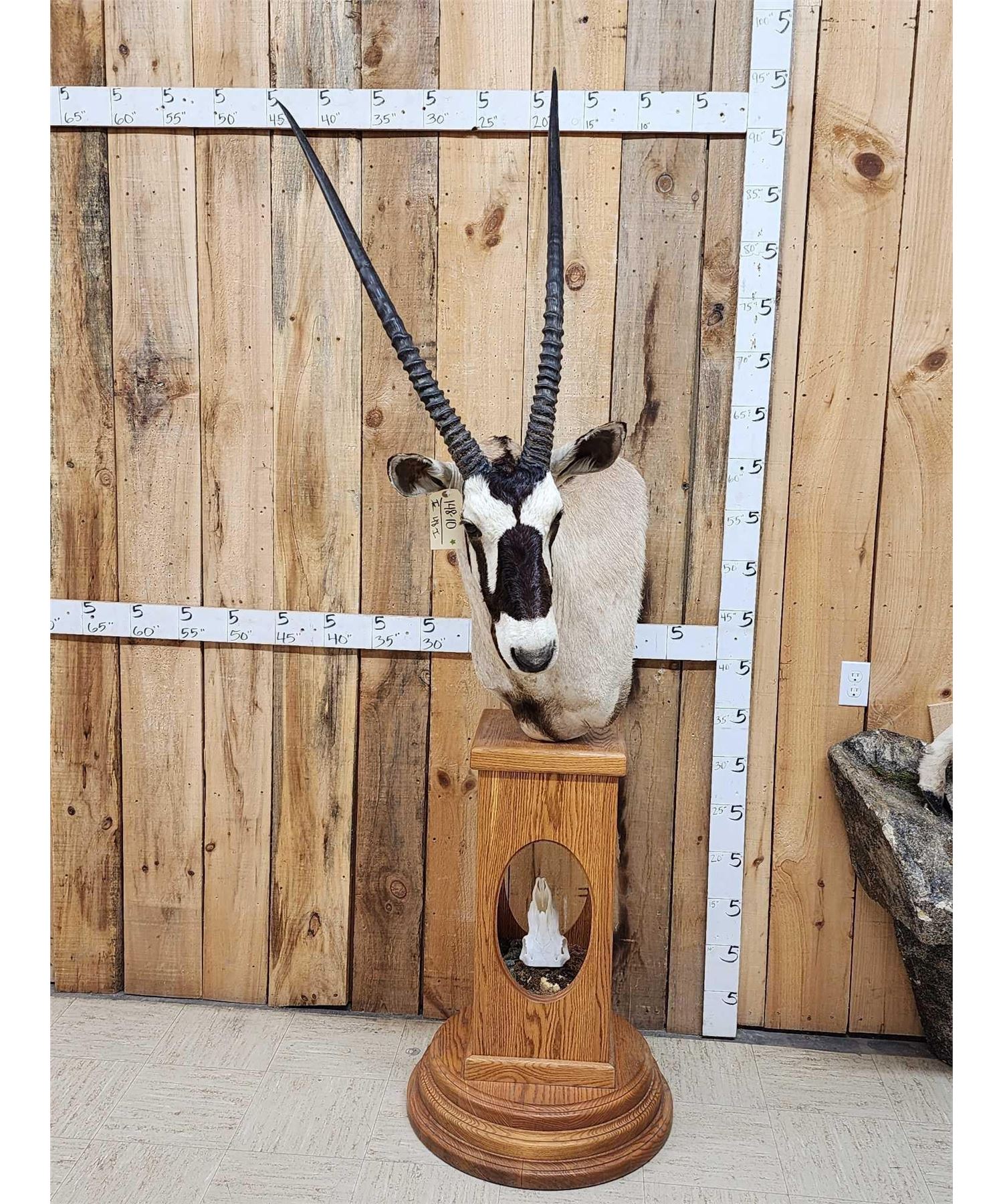 148.10 Solid mount good markings big horns over 34" on oak Pedestal