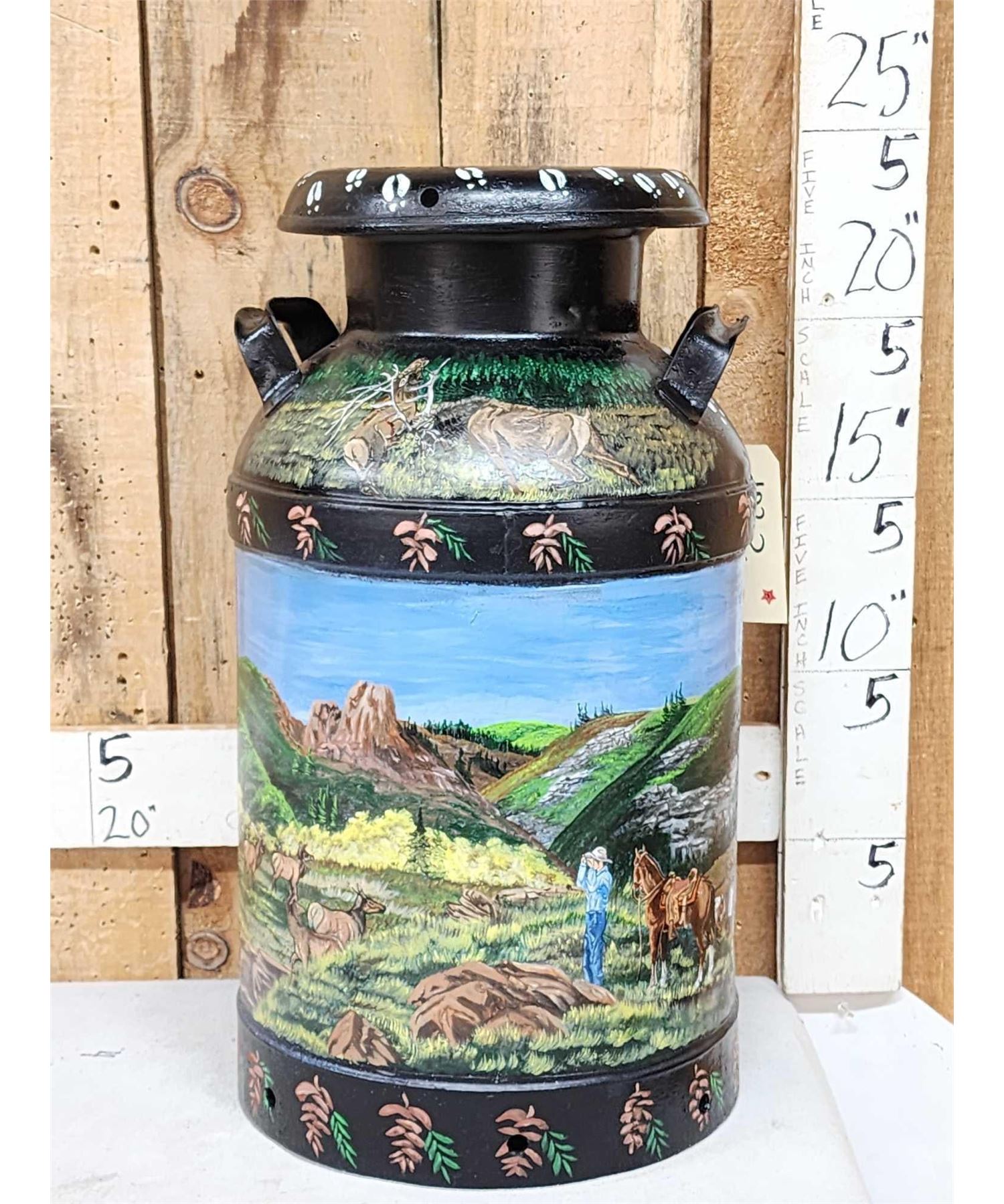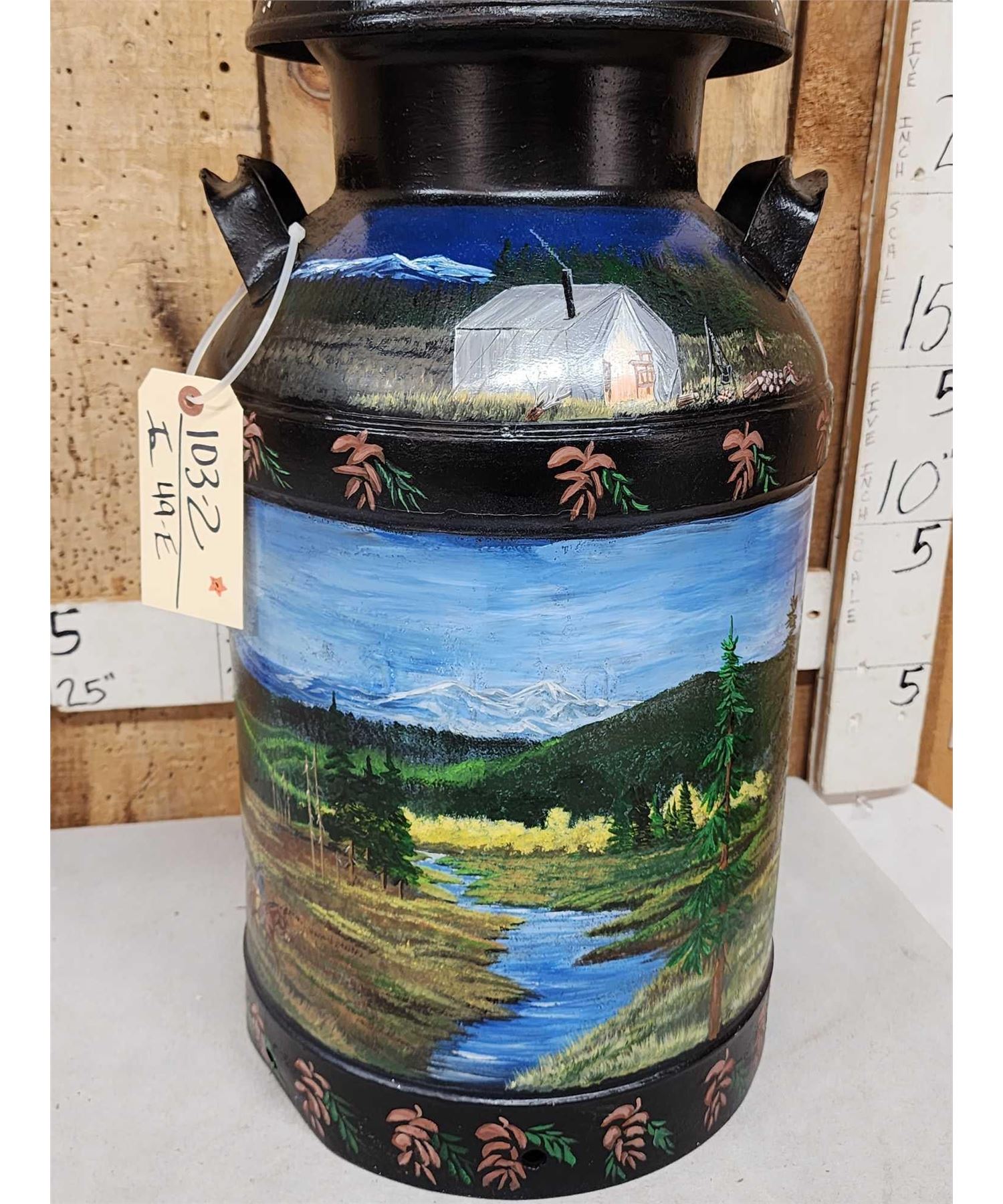 Lot 49E Vintage Hand Painted Cream Can "Elk Camp"