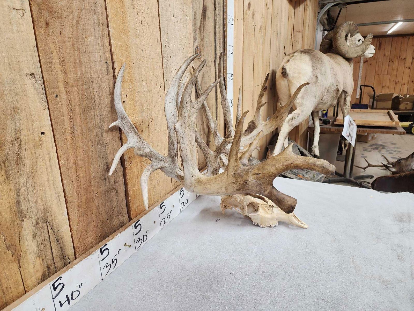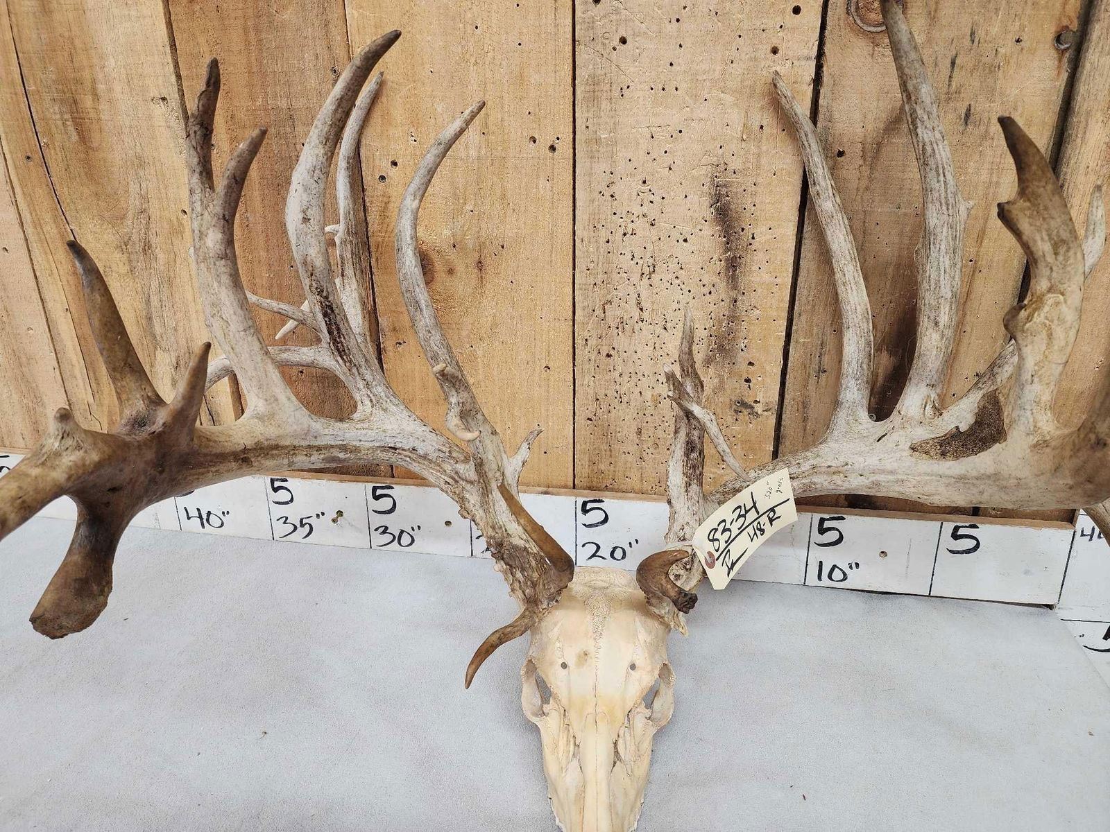 83.34 Unbelievable brows heavy Mass antlers TONS of extras on this giant preserve Deer gross score 320" with over 34" outside spread!