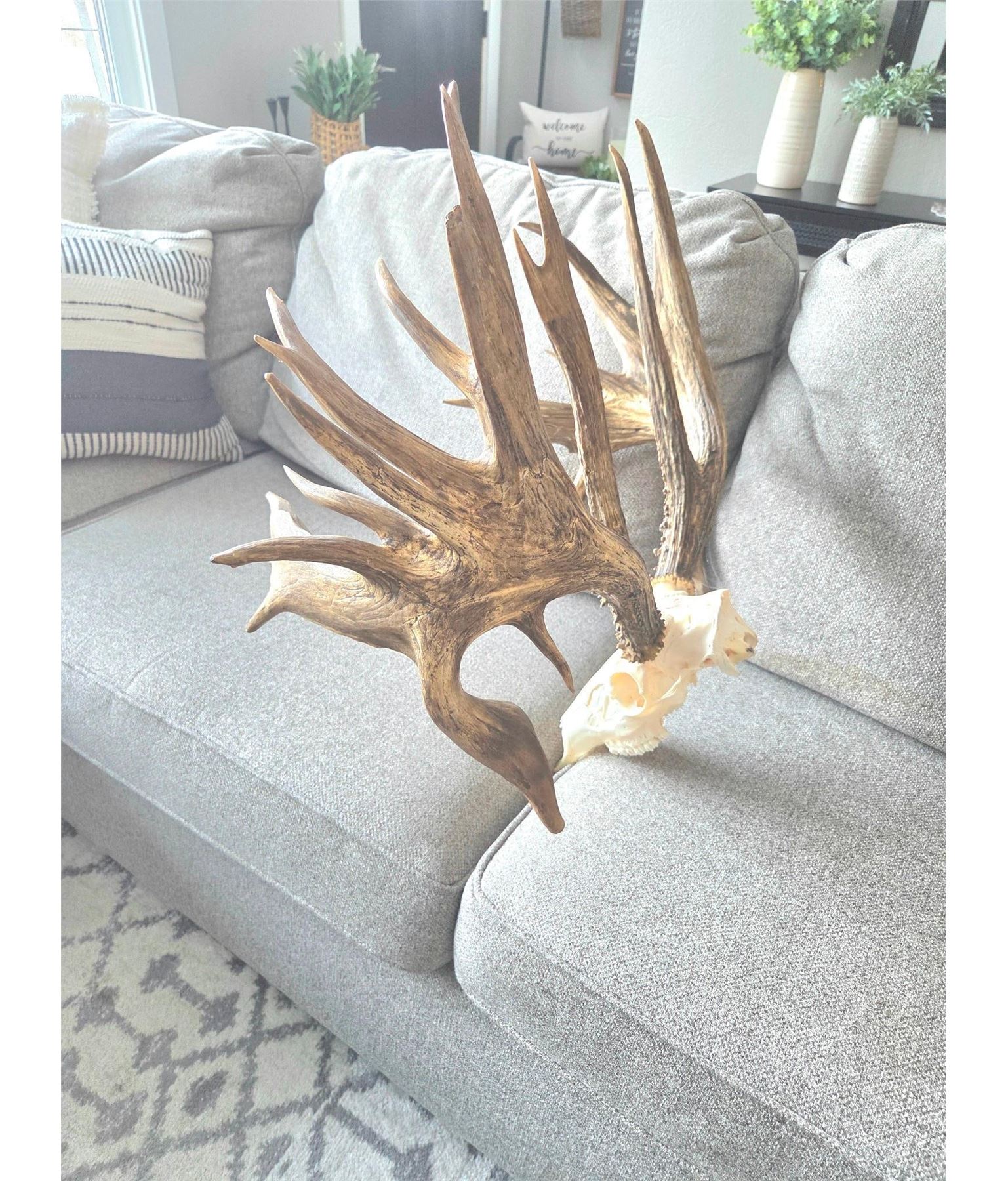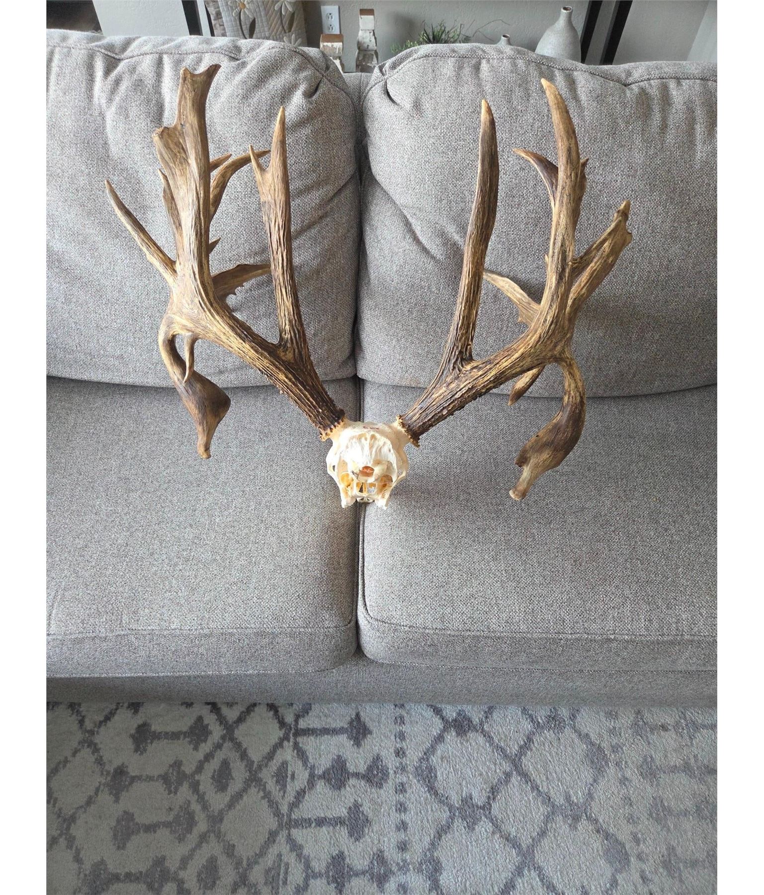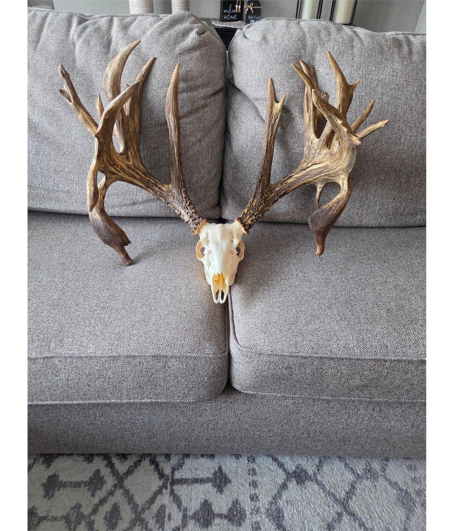 155.1 BIG preserve Deer awesome look heavy mass palmated with towering 13" brow tines 10" bulb droptines color applied