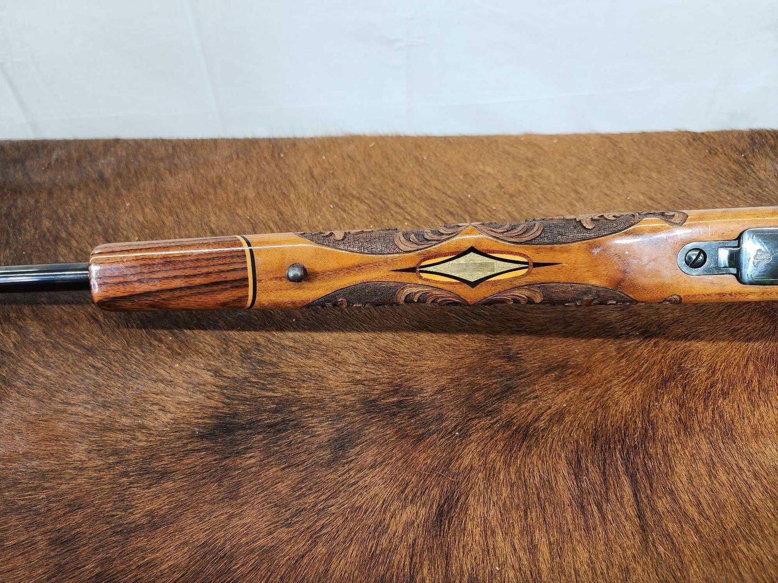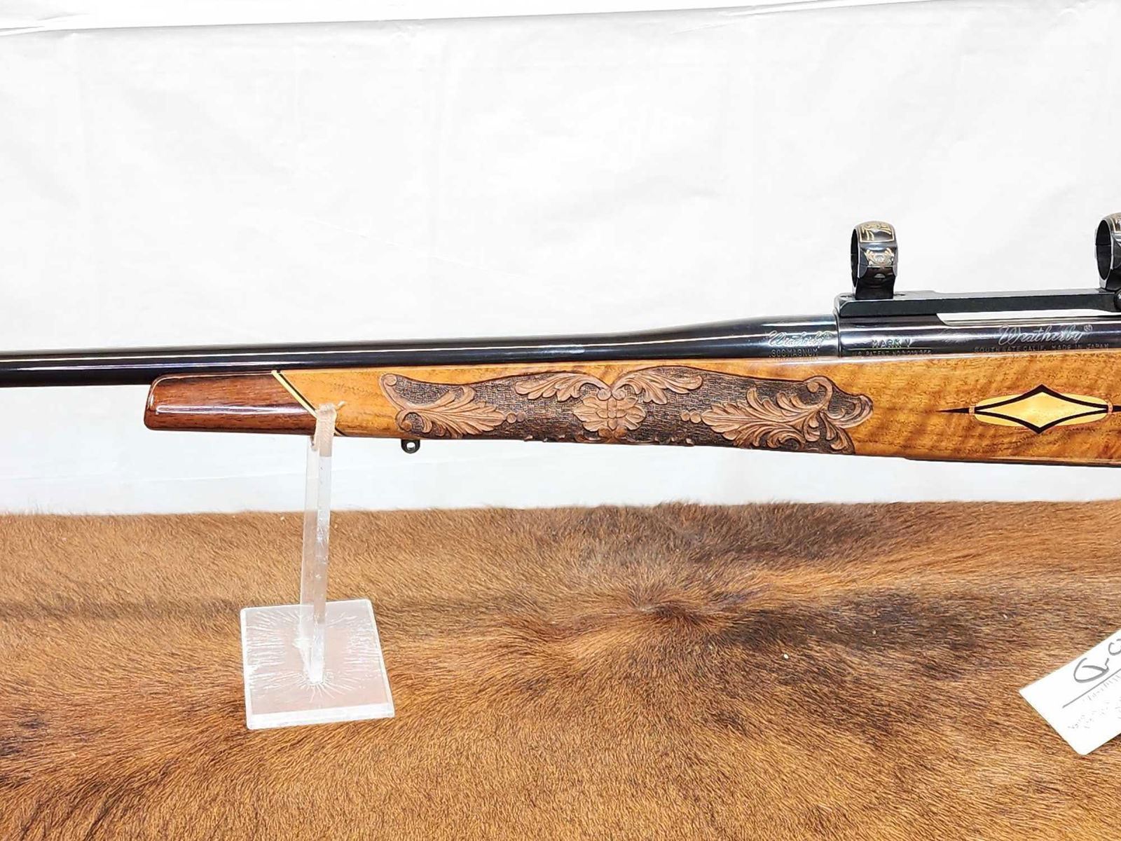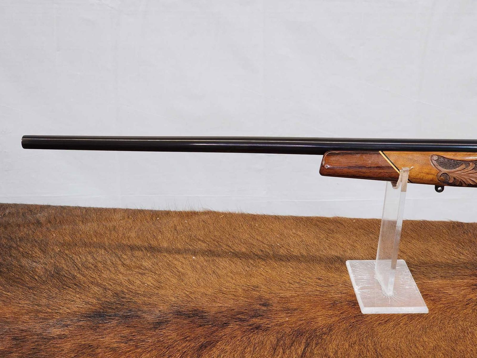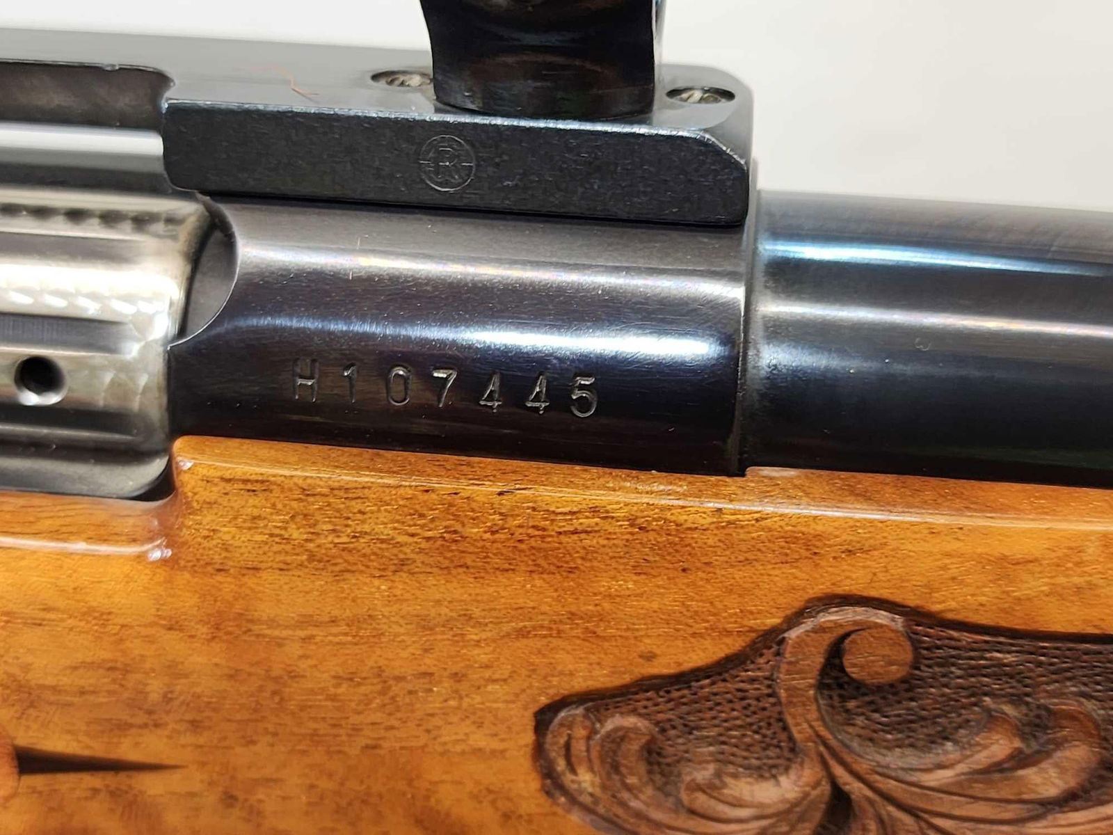 148.16 Pristine condition FANCY wood factory Weatherby Custom relief carved with ebony other inlays gold inlay scope rings 23.5" barrel this gun has seen VERY little if ANY use DEFINITELY A SHOW PIECE! SN H107445