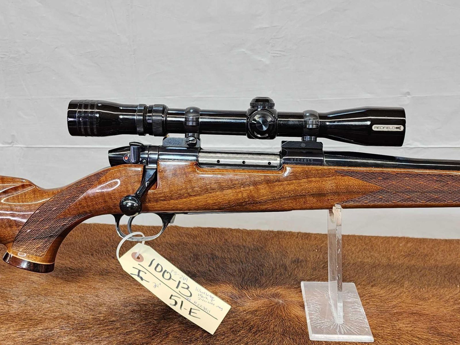 100.13 Nice clean gun great wood metal finish with minor normal wear great condition 24" barrel shiny bore good rifling appears to have seen little use with Redfield scope 56 rounds of ammunition SN H223911