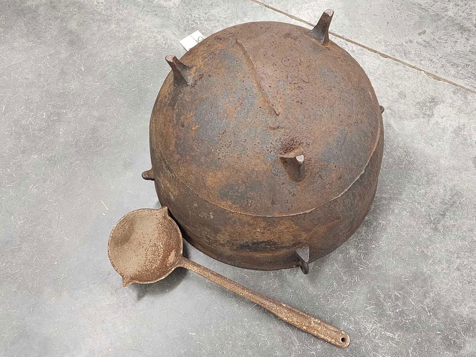 Lot 104D Antique Cast Iron Scalding Kettle & Ladle