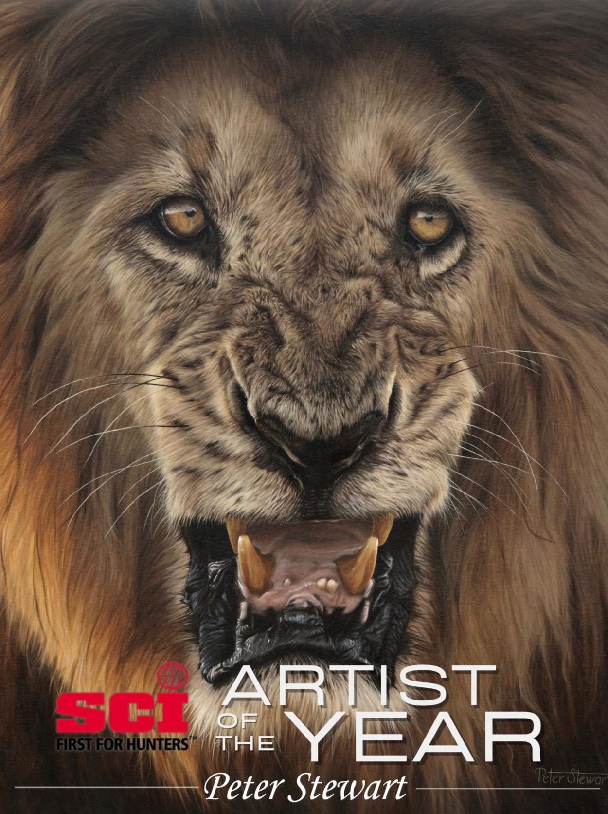 The Zambian Chapter of Safari Club International is proud to present a striking and highly collectible wildlife print: The "RAW" by Peter Stewart, who has been named Artist of the Year 2025 by SCI and was named DAVID SHEPARD wildllife of the year 2017 and reflets his passion for the wild flora and fauna of Africa.