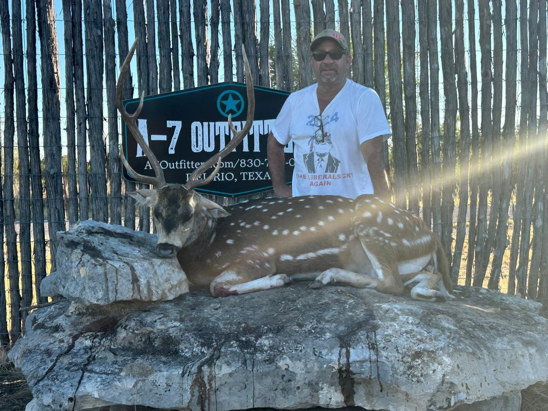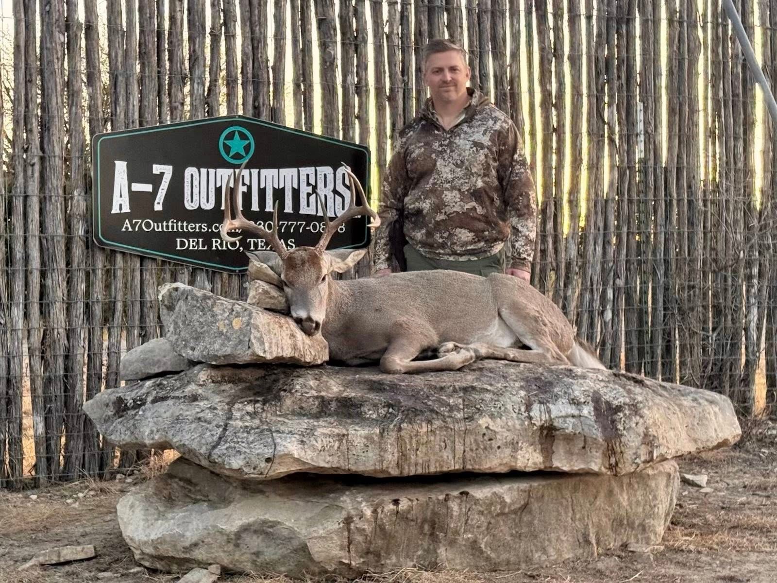 A-7 Outfitters is a family-owned and operated hunting operation. We are located in Del Rio, TX and offer a variety of animals. The ranch is approximately 5,100 acres and is divided into two sections, the north side is approximately 2,350 acres all high fenced, the south side is also approximately 2,750 acres and high fenced on 2 sides. Throughout the ranch we have 17 - 2000# All Seasons Feeders combo feeders and Texas Wildlife Supply blinds. There are a variety of blinds for every type of hunter (bow, rifle or combo blinds). There is freshwater located all over the ranch to keep animals nearby.