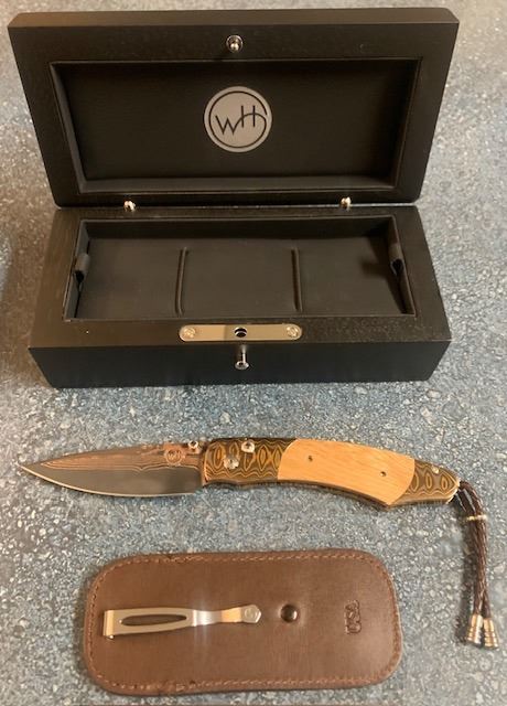Lot 33 Willliam Henry B12 Custom Knife with oak inlay from Pappy Van Winkle bourbon barrels