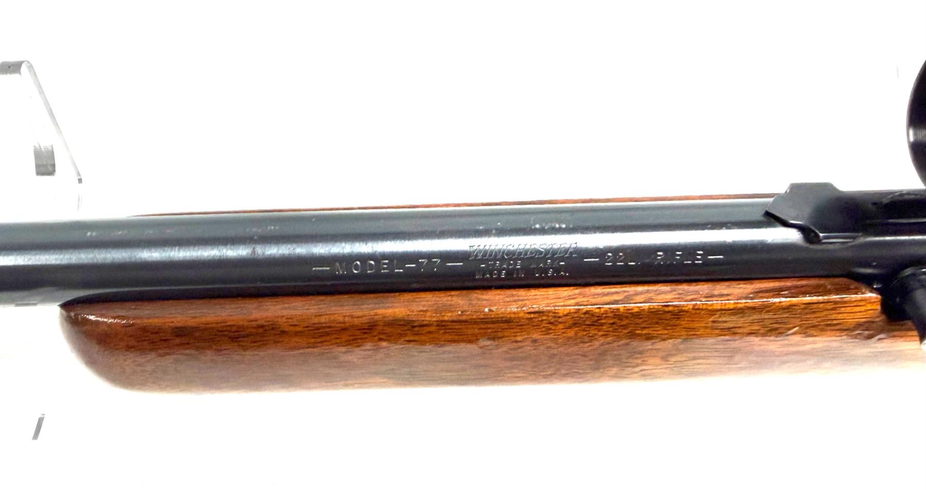 The Winchester Model 77 is a vintage semi-automatic .22 Long Rifle (LR) caliber sporting rifle produced between 1955 and 1963. It was introduced as a "centennial model" to mark Winchester's 100th anniversary. Approximately 217,000 units were manufactured during its eight-year production run.