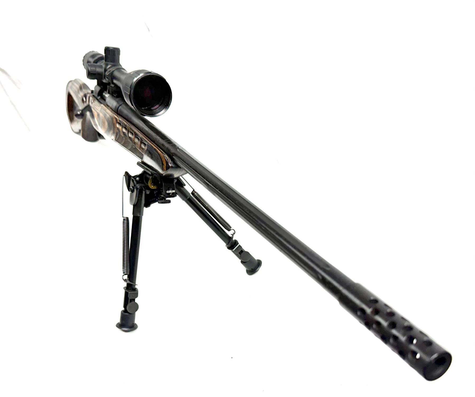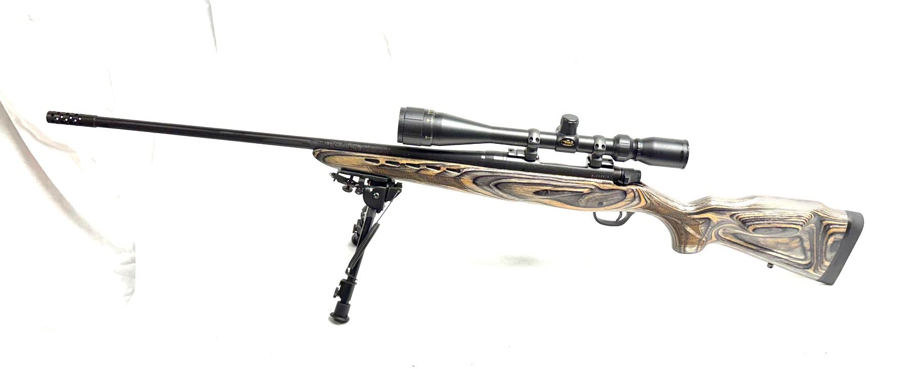 HAS FLUTED BARREL AND COMES WITH MUZZLE BRAKE