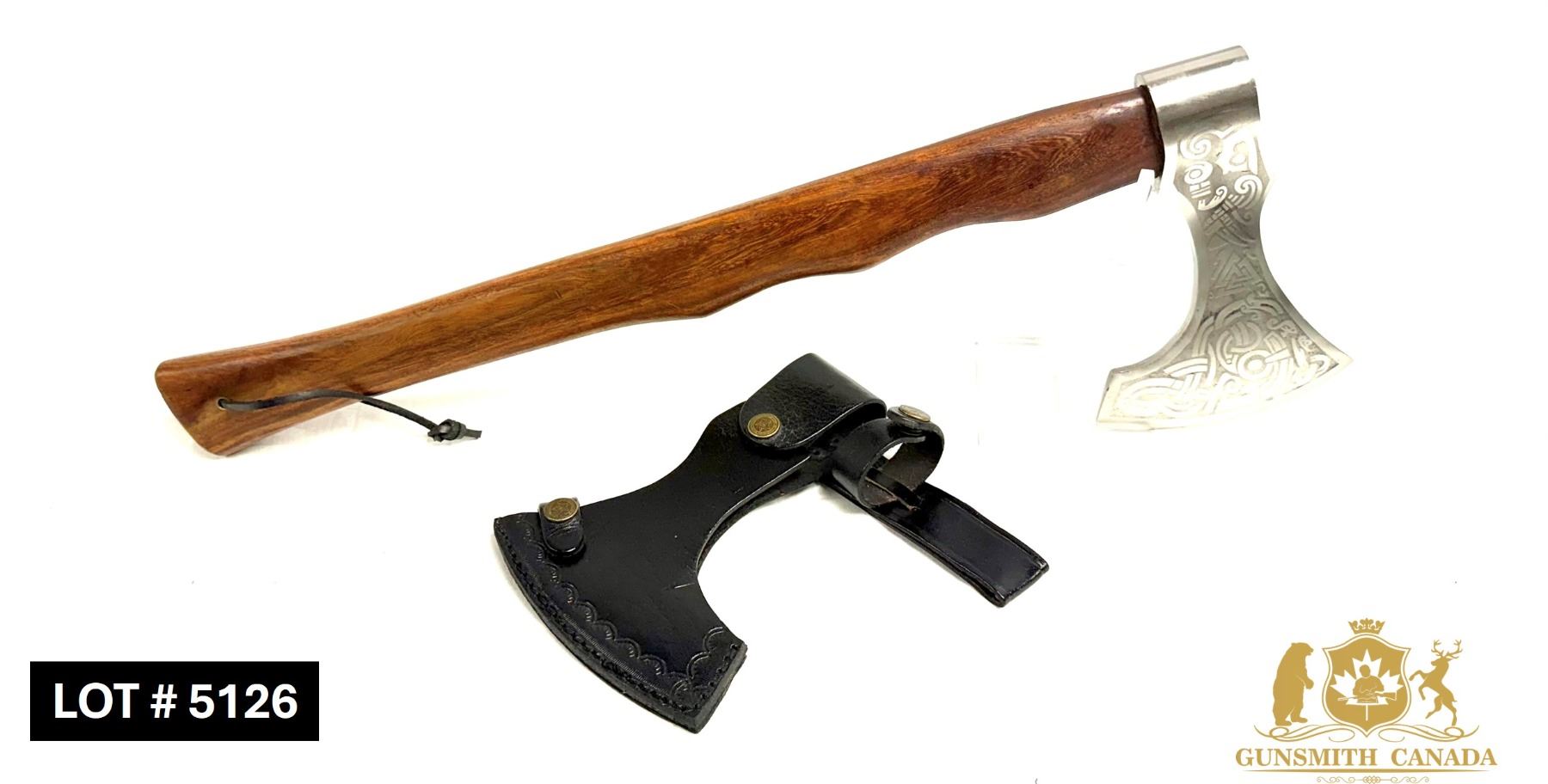 Lot 5126 AXE – MADE OF ETCHED CARBON STEEL WITH LEATHER SHEATH