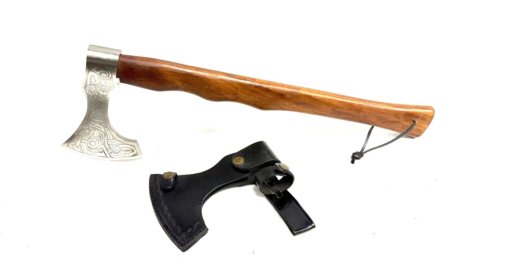 AXE – MADE OF ETCHED CARBON STEEL WITH LEATHER SHEATH