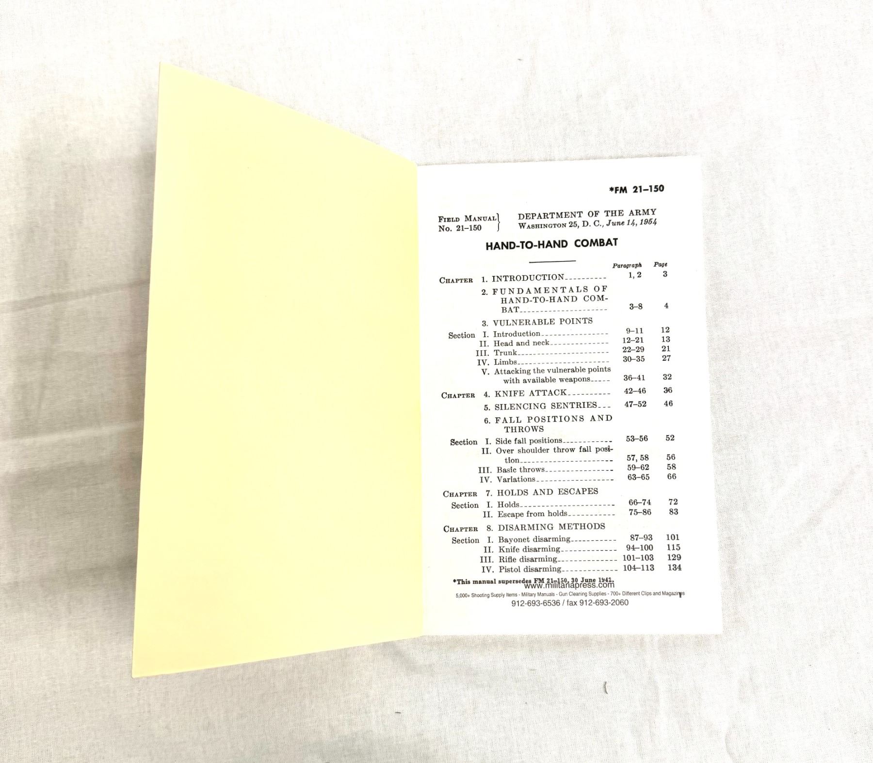 Lot 5127 HAND-TO-HAND COMBAT FIELD MANUAL – JUNE 1954