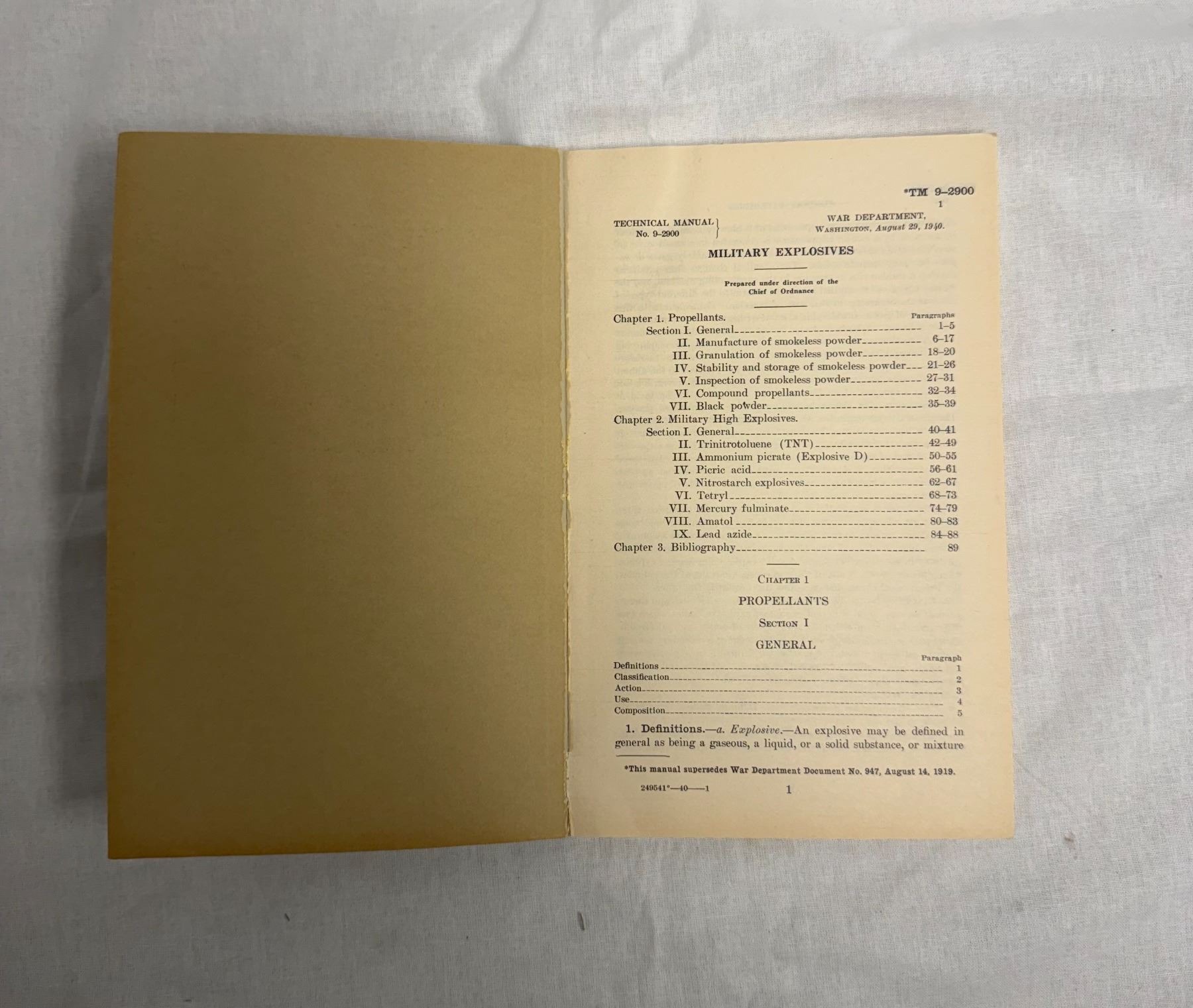 Lot 5129 TECHNICAL MANUAL – MILITARY EXPLOSIVES – WAR DEPARTMENT -AUGUST 1919