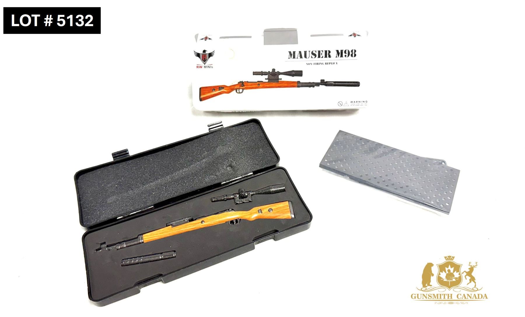 Lot 5132 RW MINI - MAUSER M98 COMPLETE SET OF MINIATURE M98 WITH CASE AND STAND