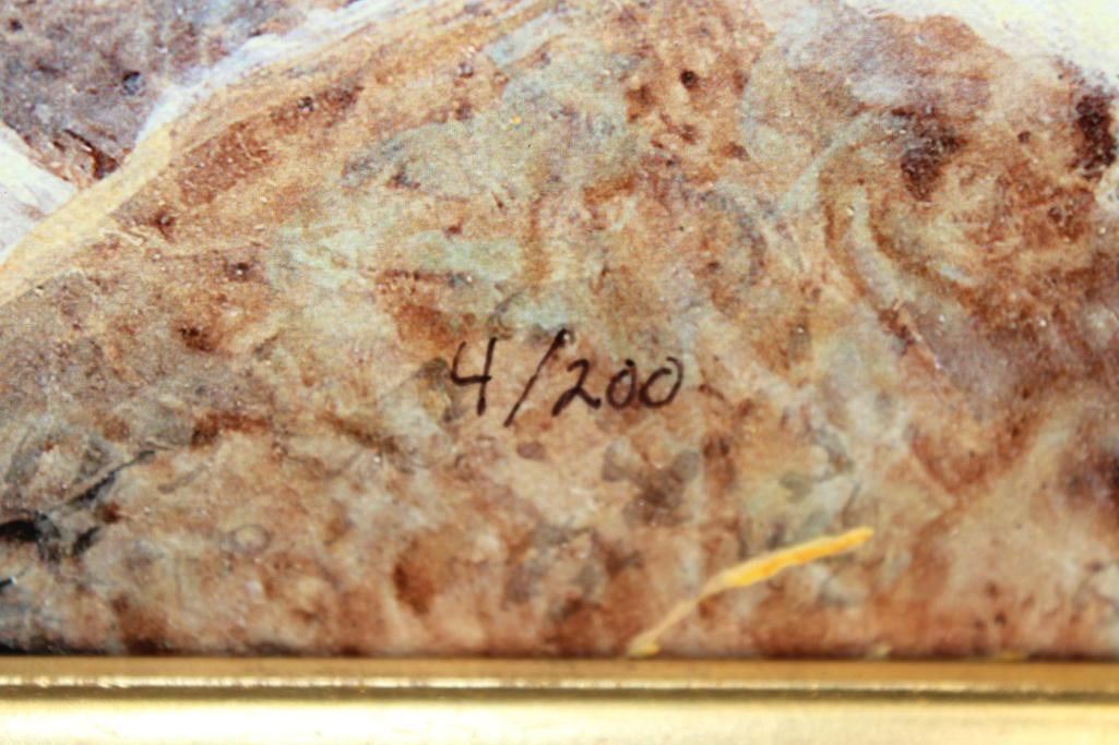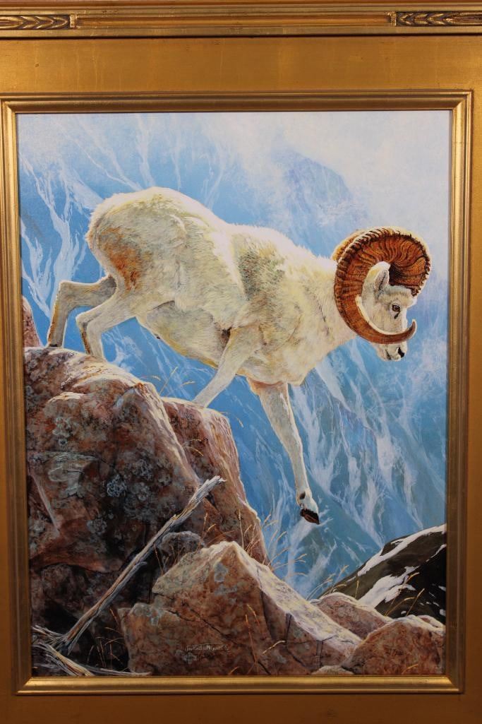 "Dall Sheep" Giclee Signed and Numbered #4/200 by artist Jan Martin McGuire. It is displayed in a beautiful painted gold Wood Frame. It measures 26" Wide x 32" Tall. COLLECTIBLE WILDLIFE ART