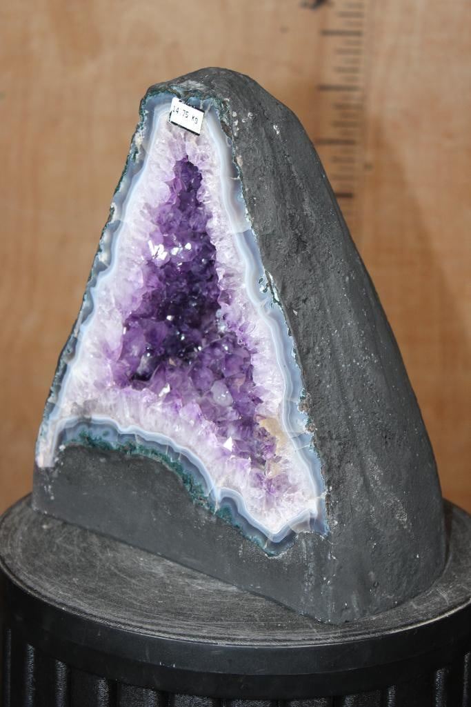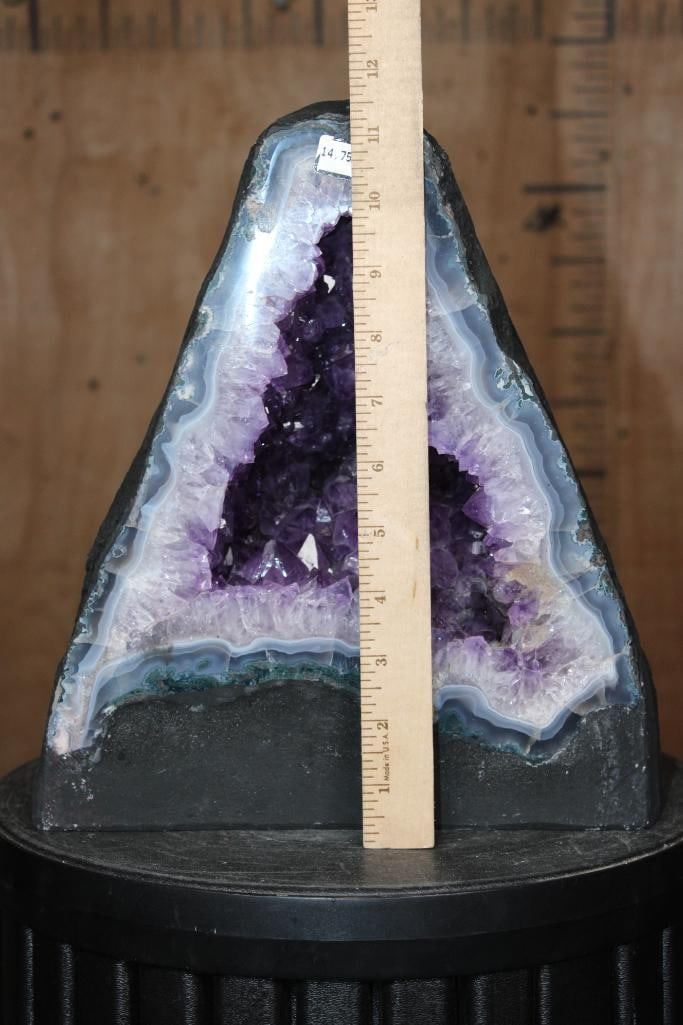 Incredible AMETHYST Geode Cathedral. It measures 11.75" Tall x 10.5" Wide x 7 7/8" Depth and the Total Weight is 31 lbs 15 oz. This Amethyst Geode Cathedral was mined in Brazil and is a truly impressive ornamental piece. ROCKS FOSSILS MINERALS CRYSTALS