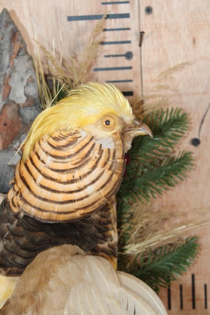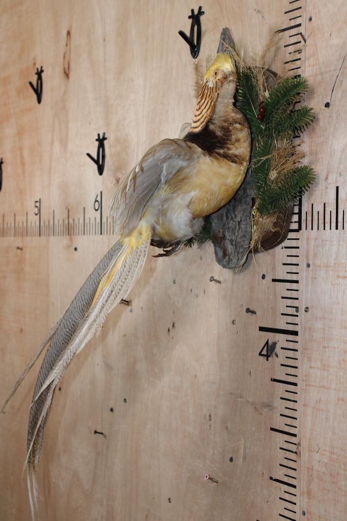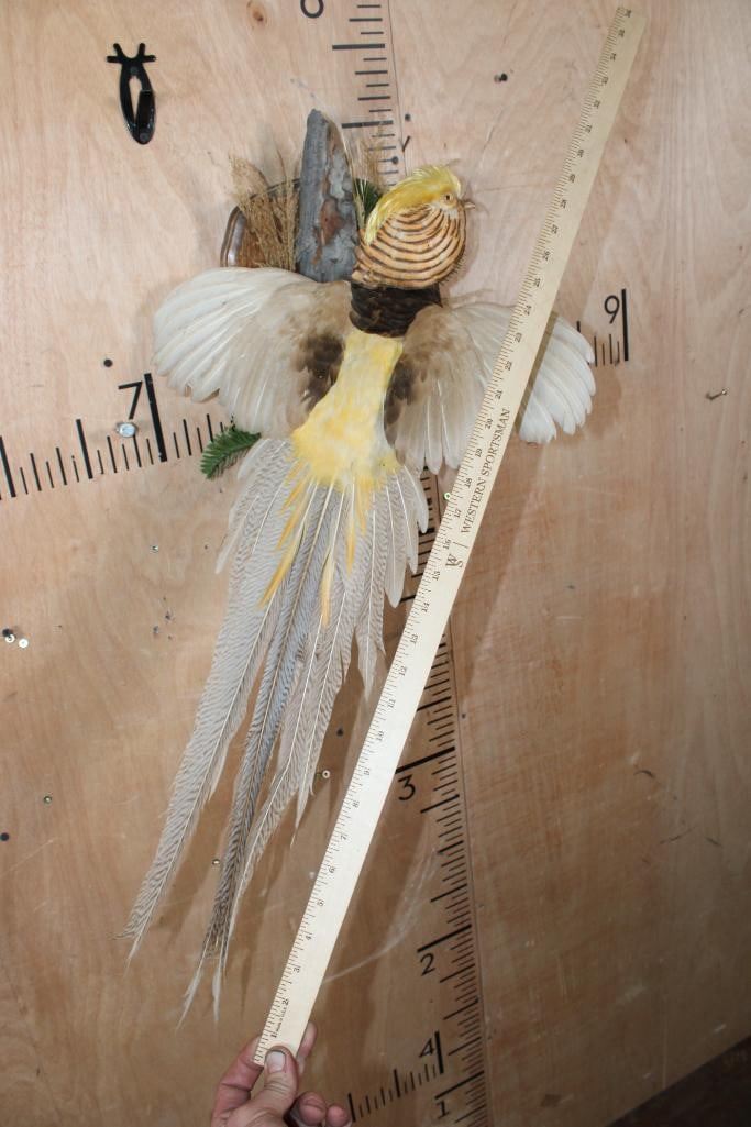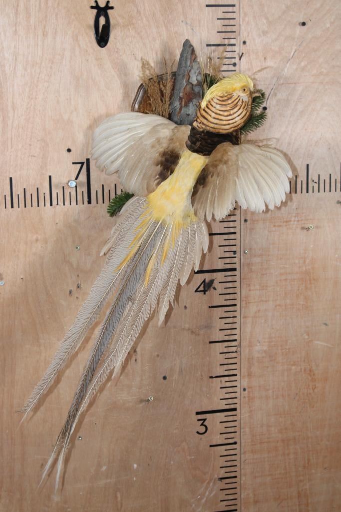 *Rare Platinum Color Variation* Life-sized Flying GOLDEN PHEASANT. It is Very Nice and in Very Good Condition. TAXIDERMY BIRDS
