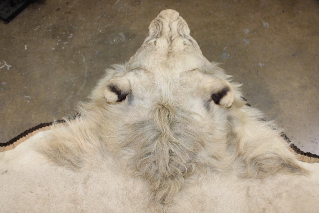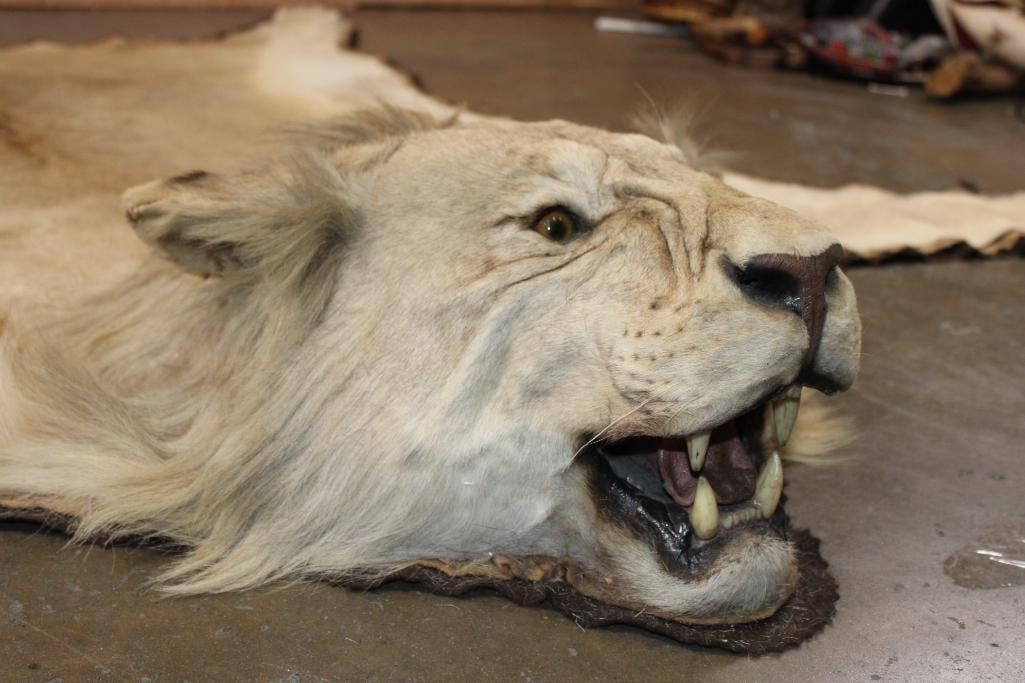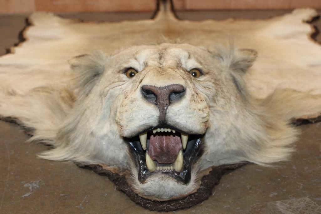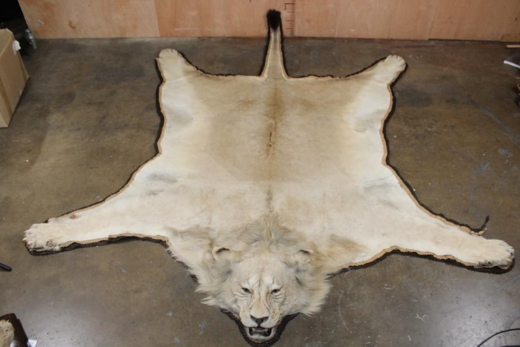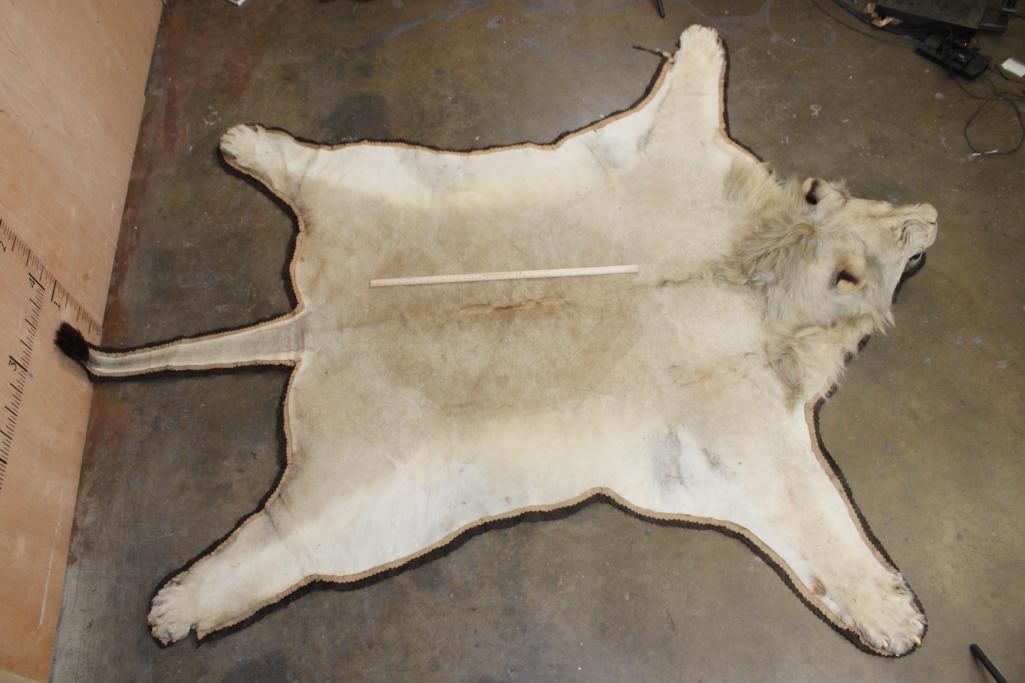 *TEXAS RESIDENTS ONLY*! Big African LION HIDE or LION RUG with its Mounted Head. It has 12-Claws and minor paw damage. It measures 121" Long x 99" Wide. It could use some new felt, otherwise it is in Good Condition. TAXIDERMY RUGS?