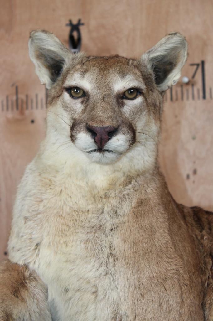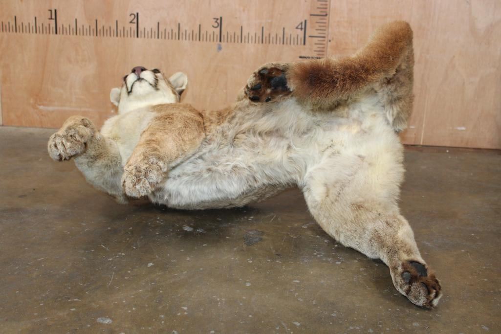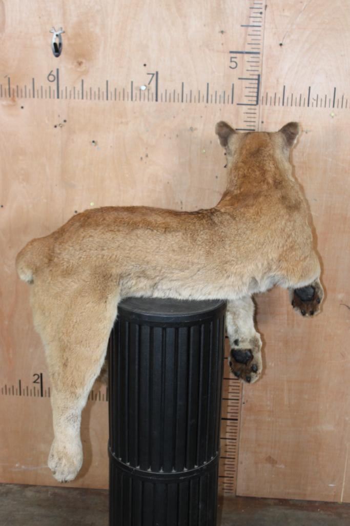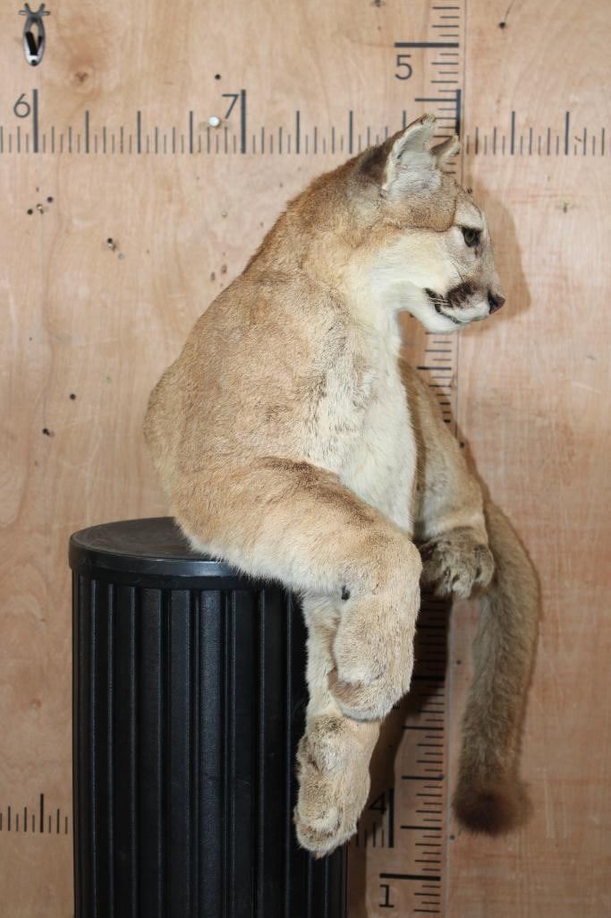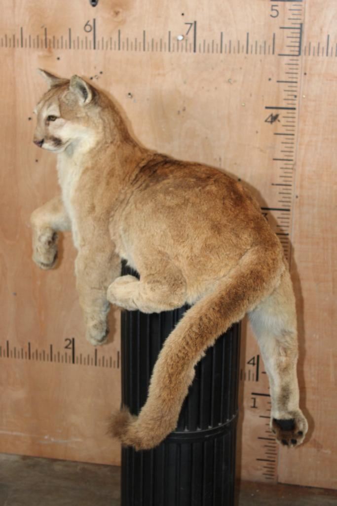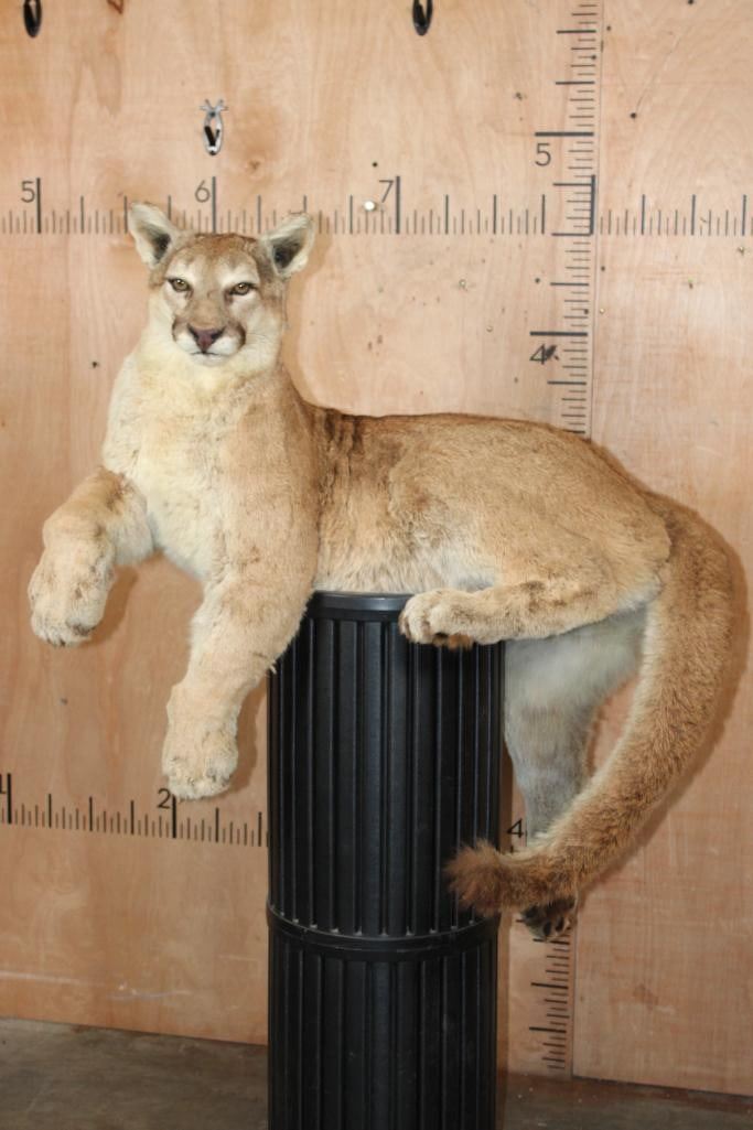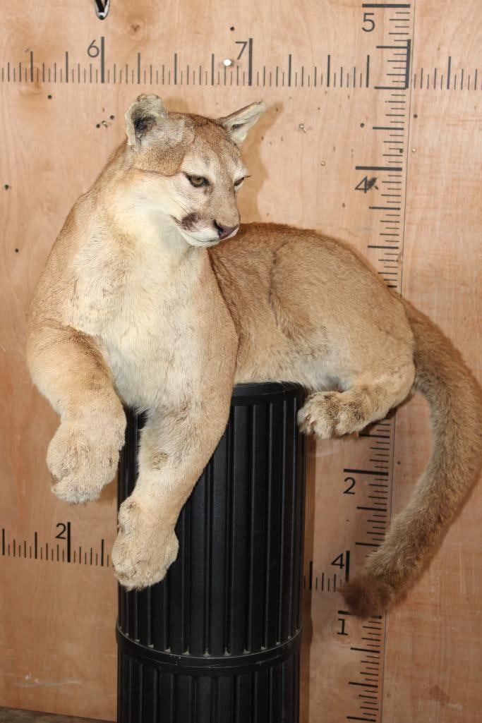 Very Nice and Clean Freestanding or Laying Life-sized MOUNTAIN LION. It measures 35" Long x 20" Wide x 34" Tall and is in Very Good Condition. TAXIDERMY