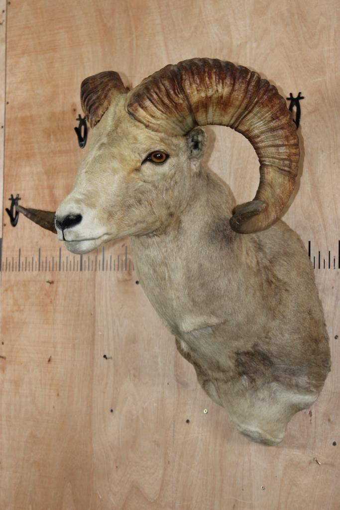 *TEXAS RESIDENTS ONLY* Very Nice ARGALI Sheep Ram Shoulder Mount. The Left Horn measures 36" Long and 15 7/8" around the Horn Base. The Right Horn measures 37.5" Long and 15.75" around the Horn Base. The left horn has a repair at the tip, otherwise it is in Good Condition. TAXIDERMY