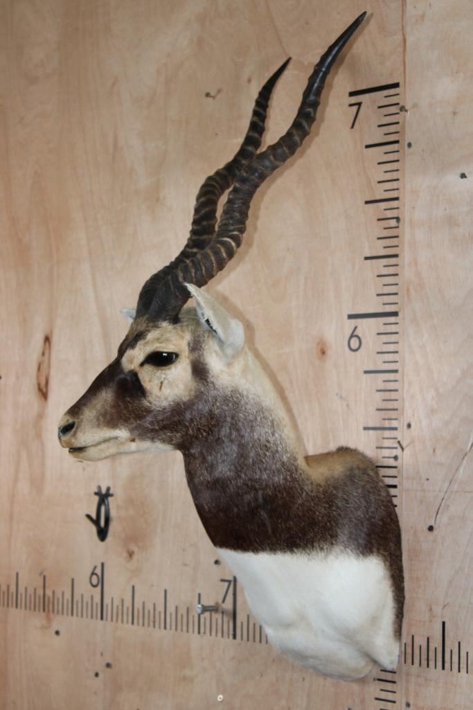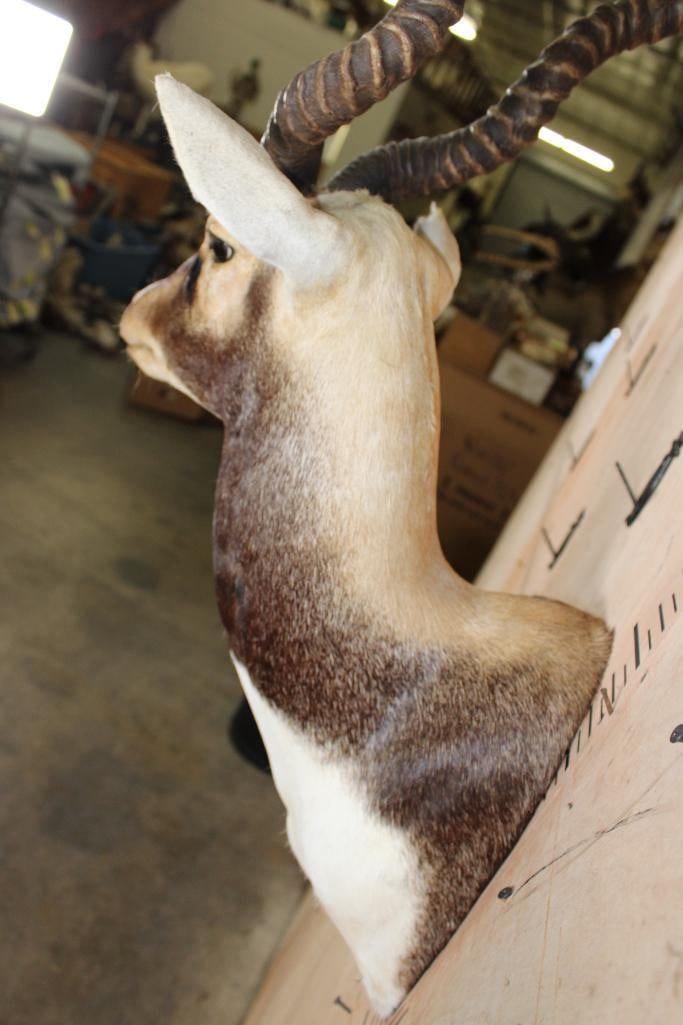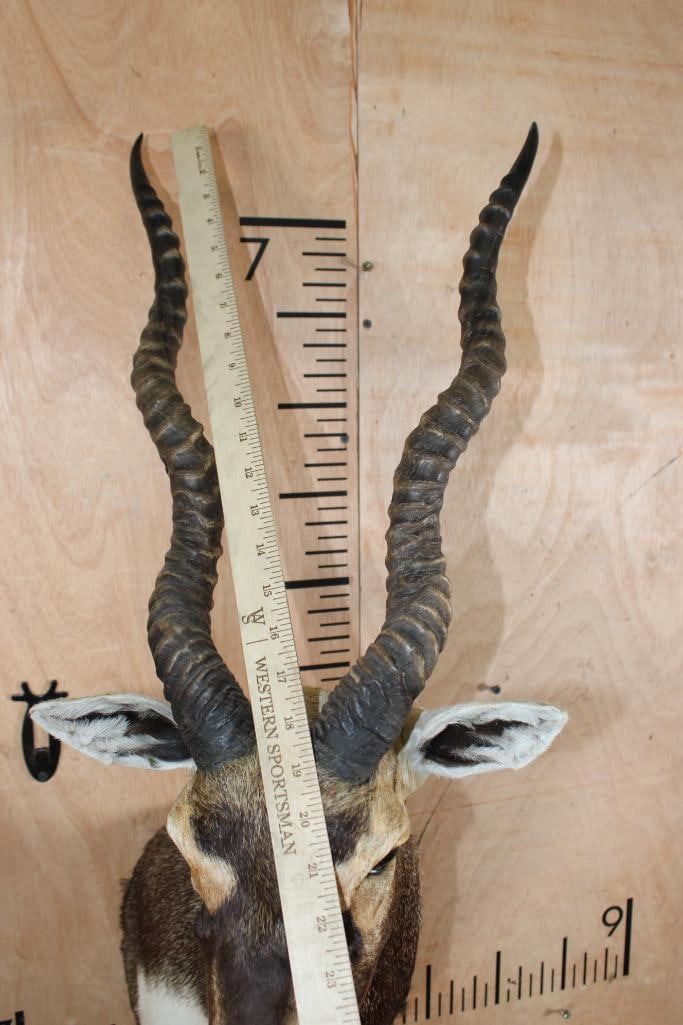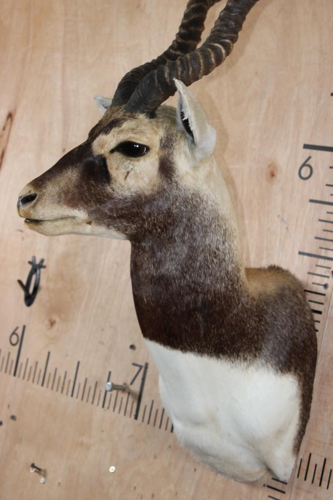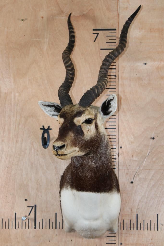 Very Nice, Clean, and Newer BLACKBUCK Shoulder Mount. The Left Horn measures 23.25" around the Spiral Ridge and the Right Horn measures 23.75" around the Spiral Ridge. It is Big and in Very Good Condition. TAXIDERMY