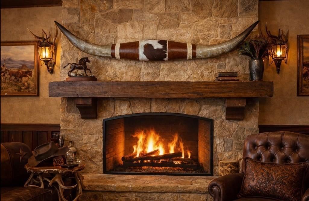 Massive Mounted WATUSI LONGHORN Cross Horns. They are wrapped with Brown and White Cowhide and Tooled Leather. They measure 64" from Tip to Tip and 19" around each Horn Base. DECORATIVE TAXIDERMY