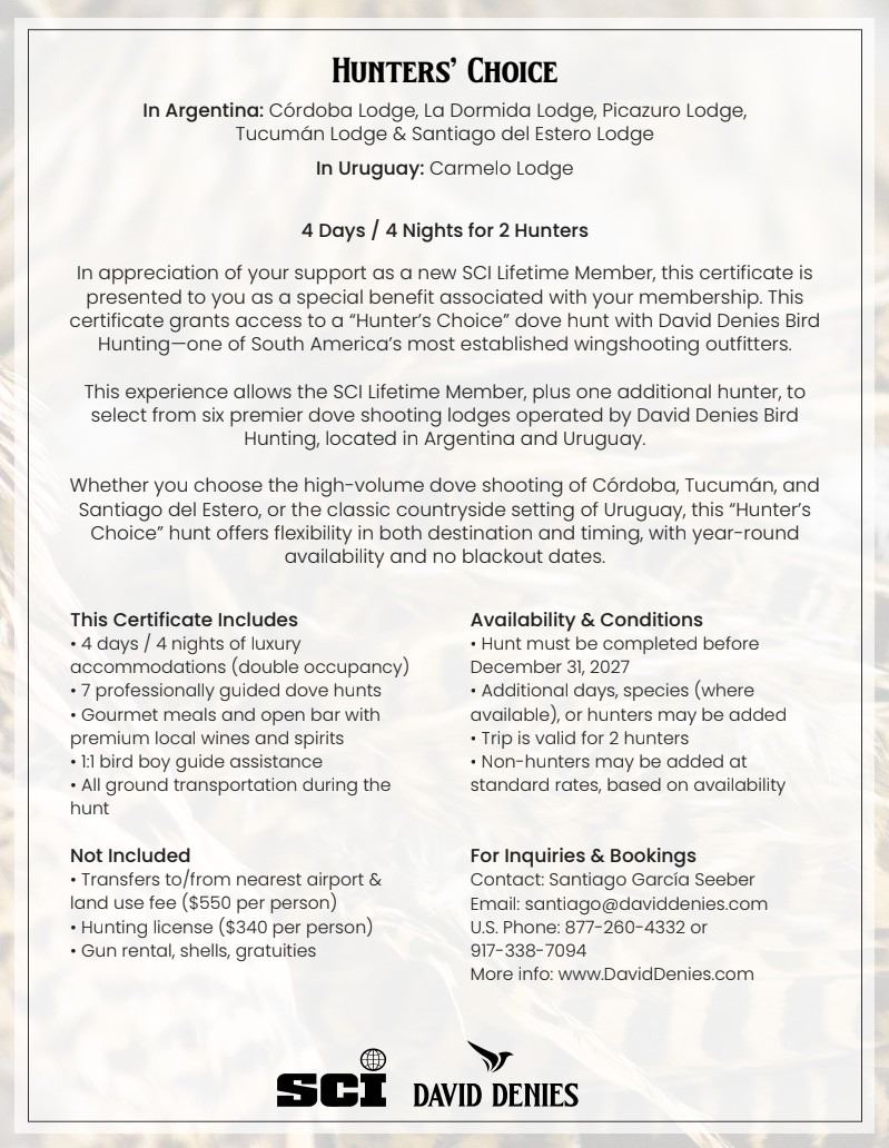 -Your membership fuels SCI’s fight to protect your hunting rights worldwide