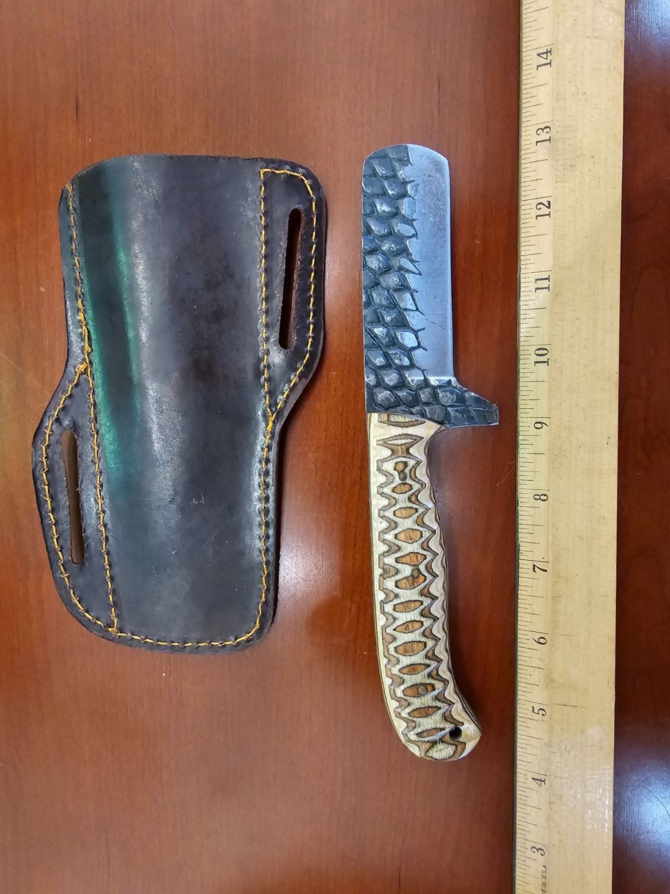 Lot 224 Hand Forged Steel Knife w/ Leather Sheath