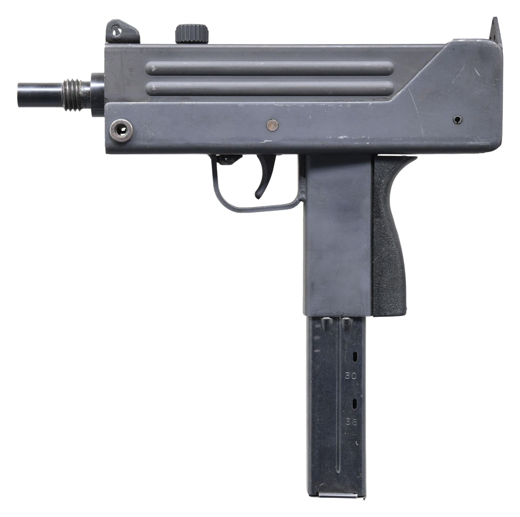 BOLT SEMIAUTOMATIC M10 9MM PISTOL Cal. 9mm. S# 81-0008128. Bbl. 5.75". The RPB industries M10, often referred to as the Mac 10, was originally offered in semi auto as an open bolt system just like its predecessor the M10 SMG. The BATF determined that the open bolt semi autos met the criteria of a machine gun under the "readily restorable" clause & banned future manufacture, Grand-Fathering those that were assembled on or before June 21, 1982 under ATF ruling 82-8. Like everything else, the Federal Government tells citizens they can not have, interest in the early originals immediately skyrocketed & they have been considered highly prized collectibles for over 40 years now. Barrel threaded w/ traditional threads. Factory protected post front & fixed rear peep sights. Rotating cocking knob locks the action closed as an additional safety. Primary safety located front right side of trigger. MAGS: 1 steel 32 rd. CONDITION: exterior finish complete & consistent w/ some scattered thinning, & drag lines, on high spots and in areas of mechanical intervention. Some very subtle patina, probably earned in storage. Bright bore w/ decent rifling. Fire control mechanism appears to function correctly when cycled by hand. PROVENANCE: Lifelong Collection of Terrance McCarty. (25-5155/JZ). MODERN. $500-900.