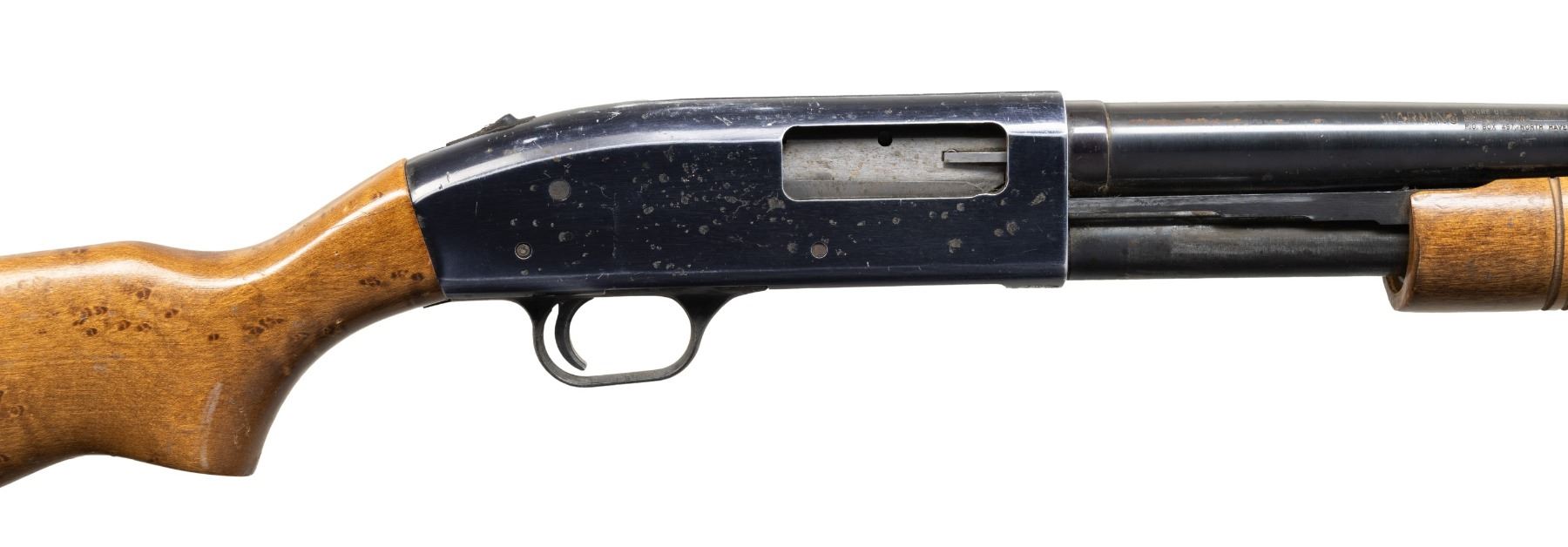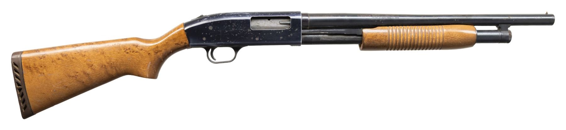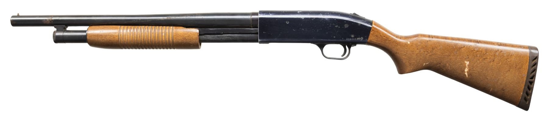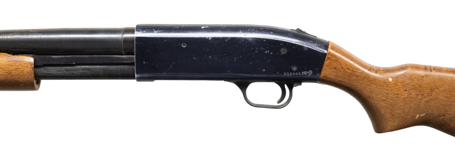 2) NEW HAVEN/MOSSBERG 600AT. CAL. 12 GA., 2 3/4". S# H364447. Bbl. 18.5" w/ cyl. bore & brass bead. Hardwood stock set w/ pad. CONDITION: fair overall appearance with handling marks, finish loss, scratches, & spots of oxidation. Stock has hole for previous sling stud. Shiny bore with fouling. (25-5482/MD). ALL MODERN. $600-900.