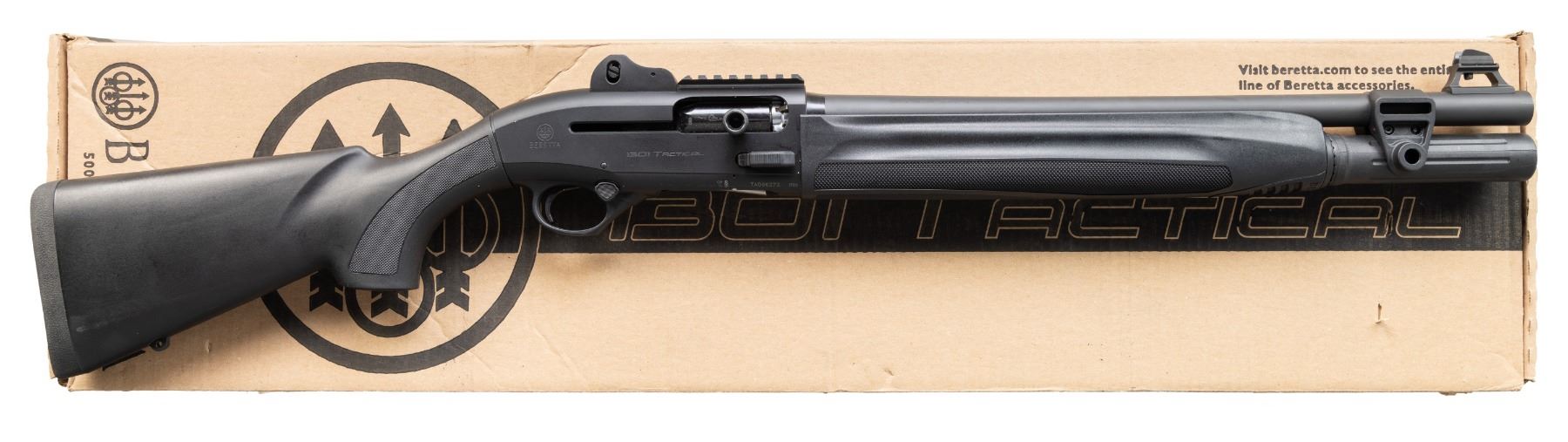 1) BERETTA 1301 TACTICAL. CAL. 12 GA., 2 3/4" & 3". S# TA066272. Mfg. 2022. Bbl. 18.5" fitted for choke tubes; IC & Cyl. included. Ghost ring style sights. Black synthetic stock set. UNATTACHED ACCESSORIES: matching factory box with buttpads, choke tube & choke wrench. CONDITION: very good to near excellent overall appearance with light wear. (25-5323/MD).