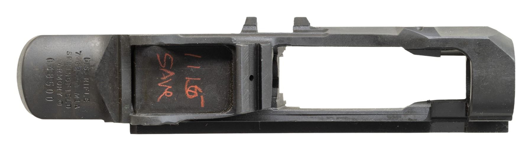 S# 048500. Receiver marked on heel "U.S. RIFLE / 7.62-mm M1A / SPRINGFIELD / ARMORY". Receiver appears unused. High quality and desirable investment cast receiver is marked on the inside "A39". Receiver contains no additional parts. CONDITION: receiver retains virtually all of its original factory non-reflective finish. (25-2944/RW). MODERN. $200-400.