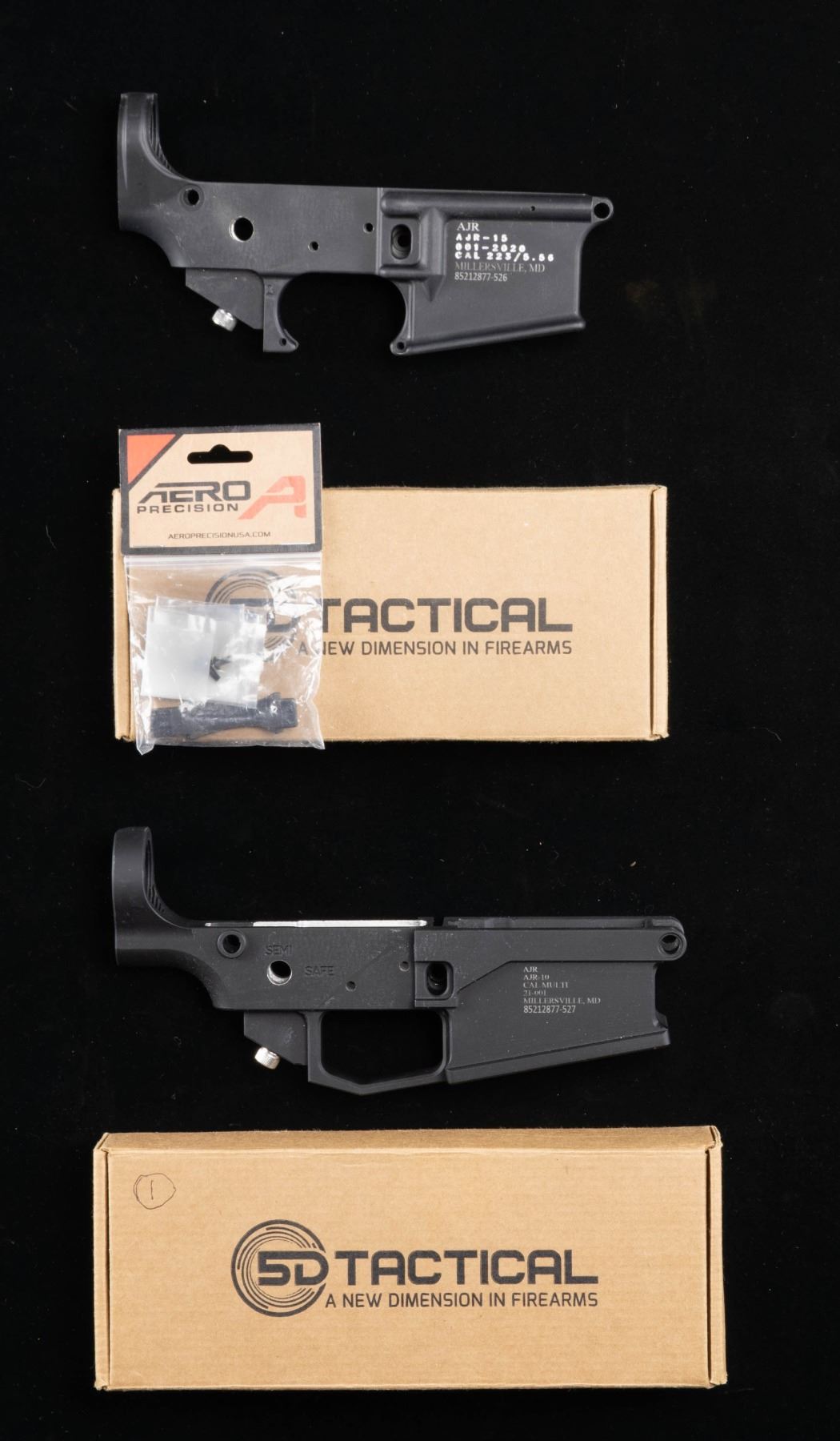 2) AJR, Model AJR-15 stripped lower receiver. S# 85212877-526. CONDITION: As finished from 5D lower receiver kit. Black anodized external finish. Internal milling surfaced remain unfinished. (25-5265/JZ). MODERN.$200-300.