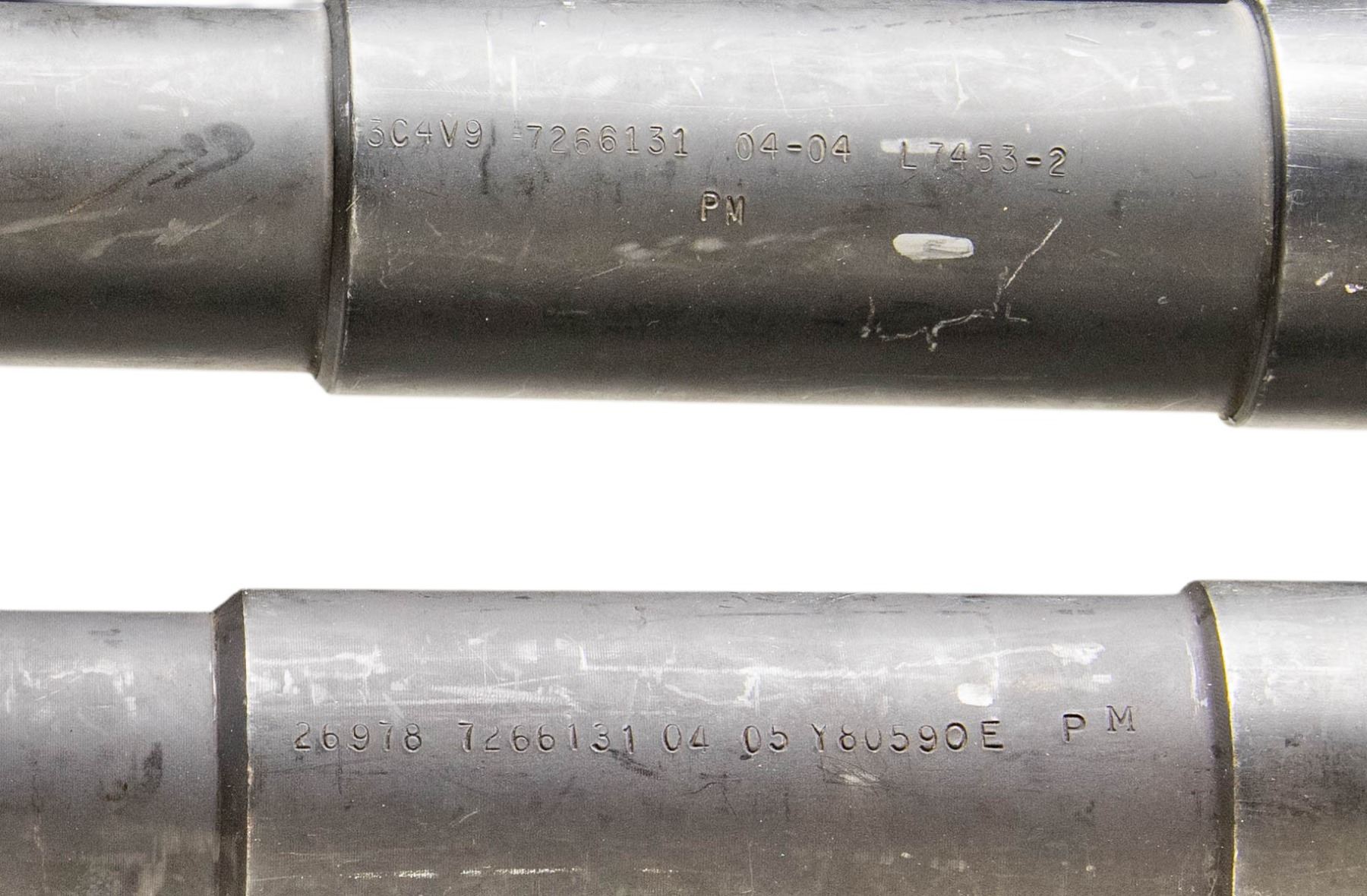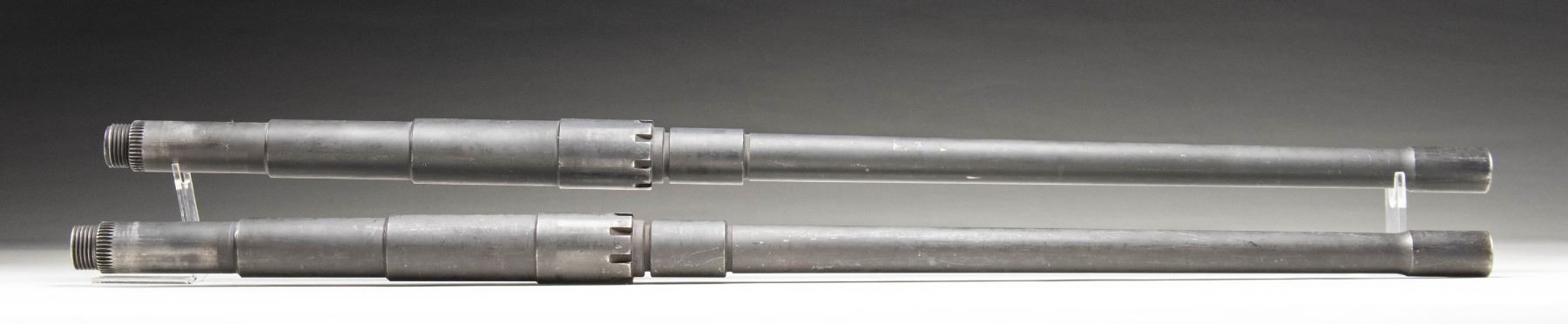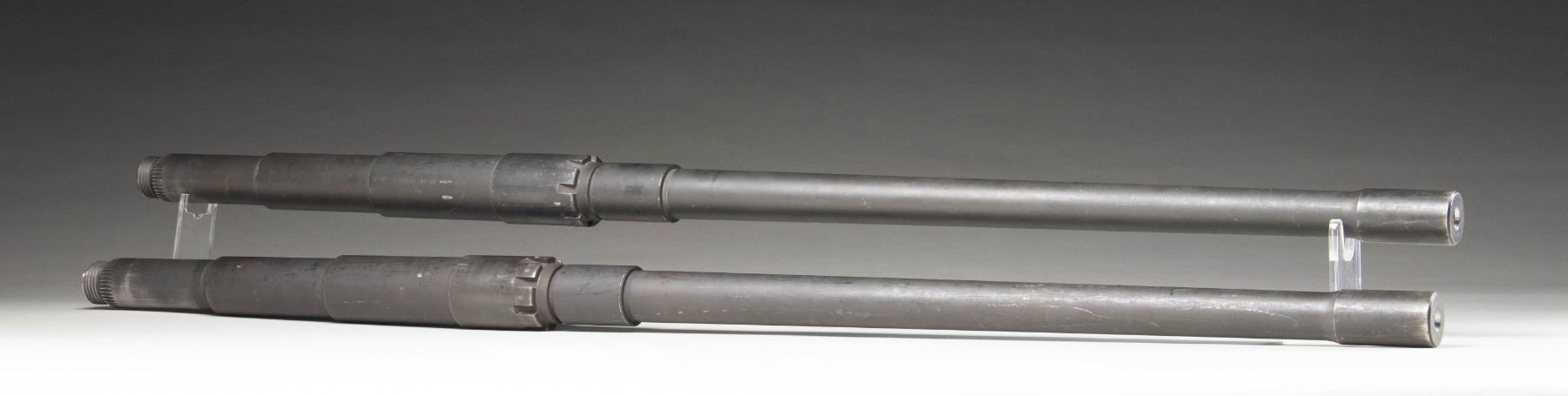 Lot consists of: 1) Browning M2HB bbl. Side of the bbl. is marked "3C4V9 7266131 04-04 L7453-2" above PM". Collar is stamped "3" between the notches. Bbl. exhibits a parkerized finish. CONDITION: exterior retains the majority of its parkerized finish, exhibiting some areas of wear and thinning that are fading to gray patina, with scattered superficial handling marks present overall. Mirror bore, retaining well defined rifling throughout. 2) Browning M2HB bbl. Side of the bbl. is marked "26978 7266131 04 05 Y80590E PM". Collar is stamped "4" between the notches. Bbl. exhibits a parkerized finish. CONDITION: exterior retains the majority of its original parkerized finish, showing areas of wear and thinning fading to gray patina, with scattered superficial handling marks present overall. Bright bore, exhibiting scattered spots of what appears to be hardened firing residue, while retaining well defined rifling throughout. (02-25487/MLW). NON-GUN. $800-1,200.