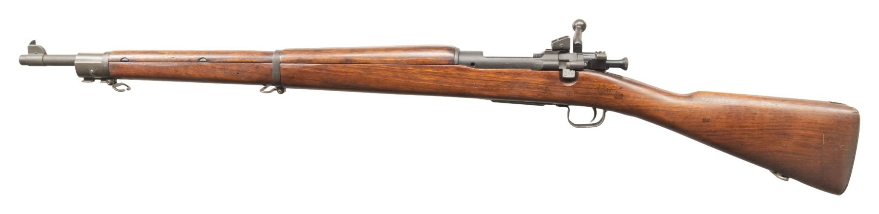 RIFLE. Cal. 30-06. S# 4756892. Bbl. 24". Six groove barrel is marked behind front sight "SC / flaming bomb / 2 43". Adjustable aperture rear sight graduated to 800 yards. Blade front sight. Replacement bolt assembly with "R" parts markings and scalloped safety lug. All stamped furniture including fine checkered trap buttplate. Remington produced large bow trigger guard and Remington marked upper band. Walnut stock set. Straight grip buttstock made with two reinforcing pins is marked on left side with boxed "FJA / crossed cannons". Encircled "P" proof under grip and "OG" overhaul mark of the Ogden Arsenal in Utah. UNATTACHED ACCESSORIES: plastic oiler in butt. CONDITION: stock set retains legible markings with light wear and scattered handling marks. Metal retains 90% of its arsenal rework parkerized finish with light wear and scattered handling marks. Retaining screw in upper band appears to be replacement. Near excellent shiny bore. PROVENANCE: Amoskeag Auction Company invoice with illegible date and three pages of handwritten data notes. (25-6029/RW). CURIO. $500-700.