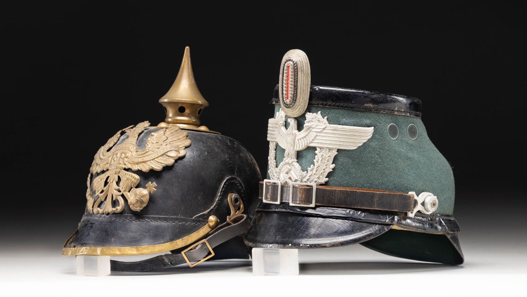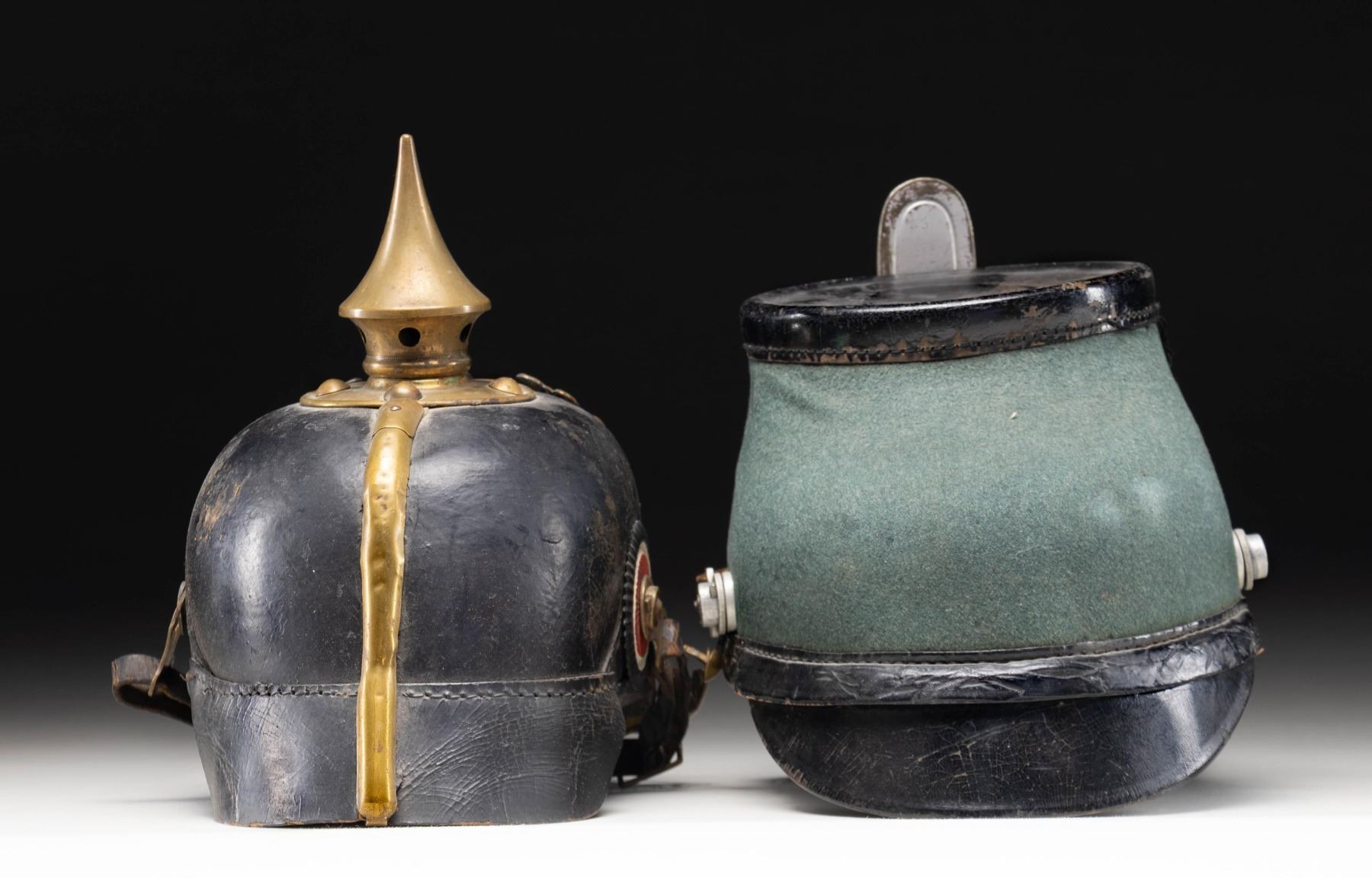Lot 1285 GERMAN WWI SPIKE HELMET & WWII POLICE SHAKO.