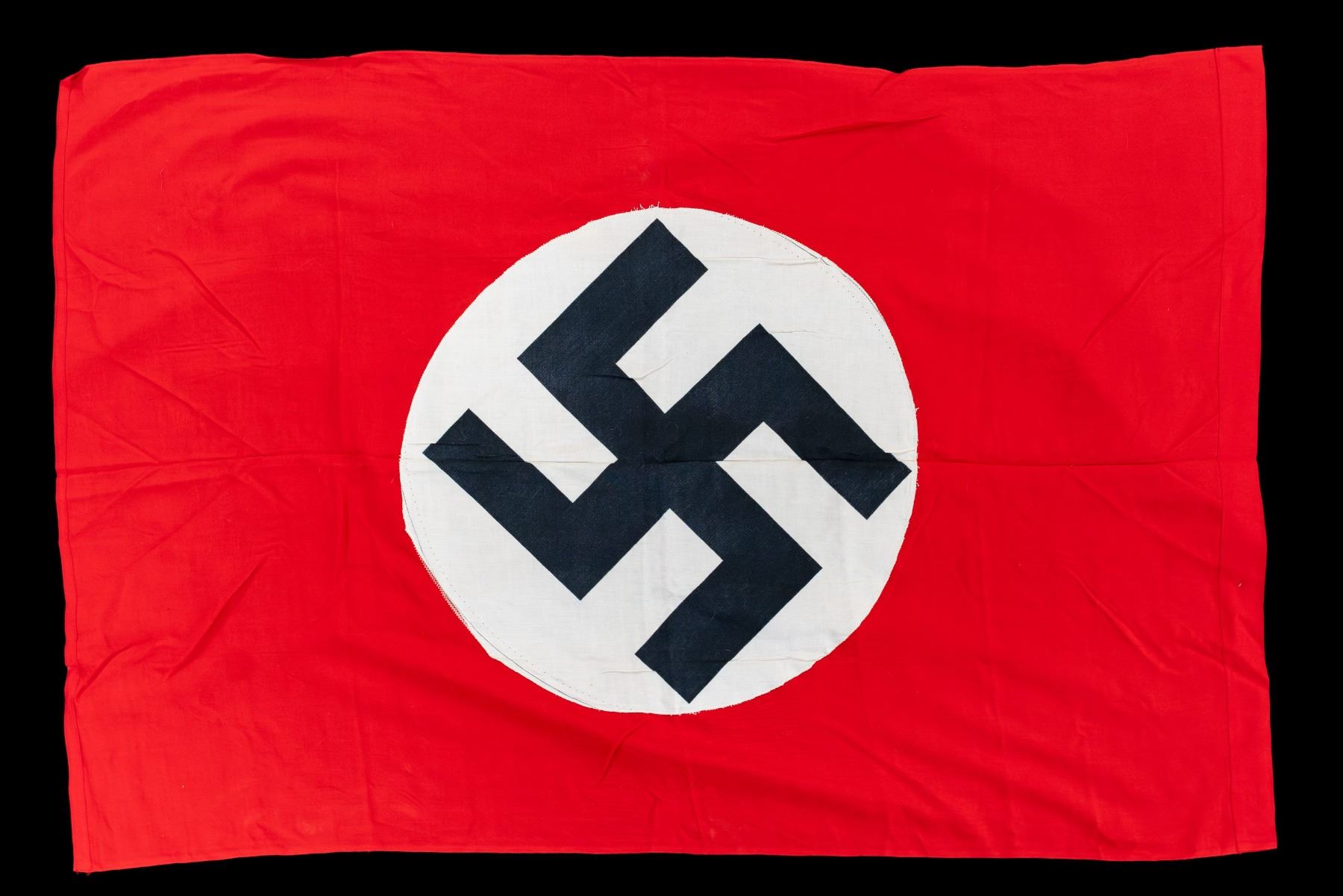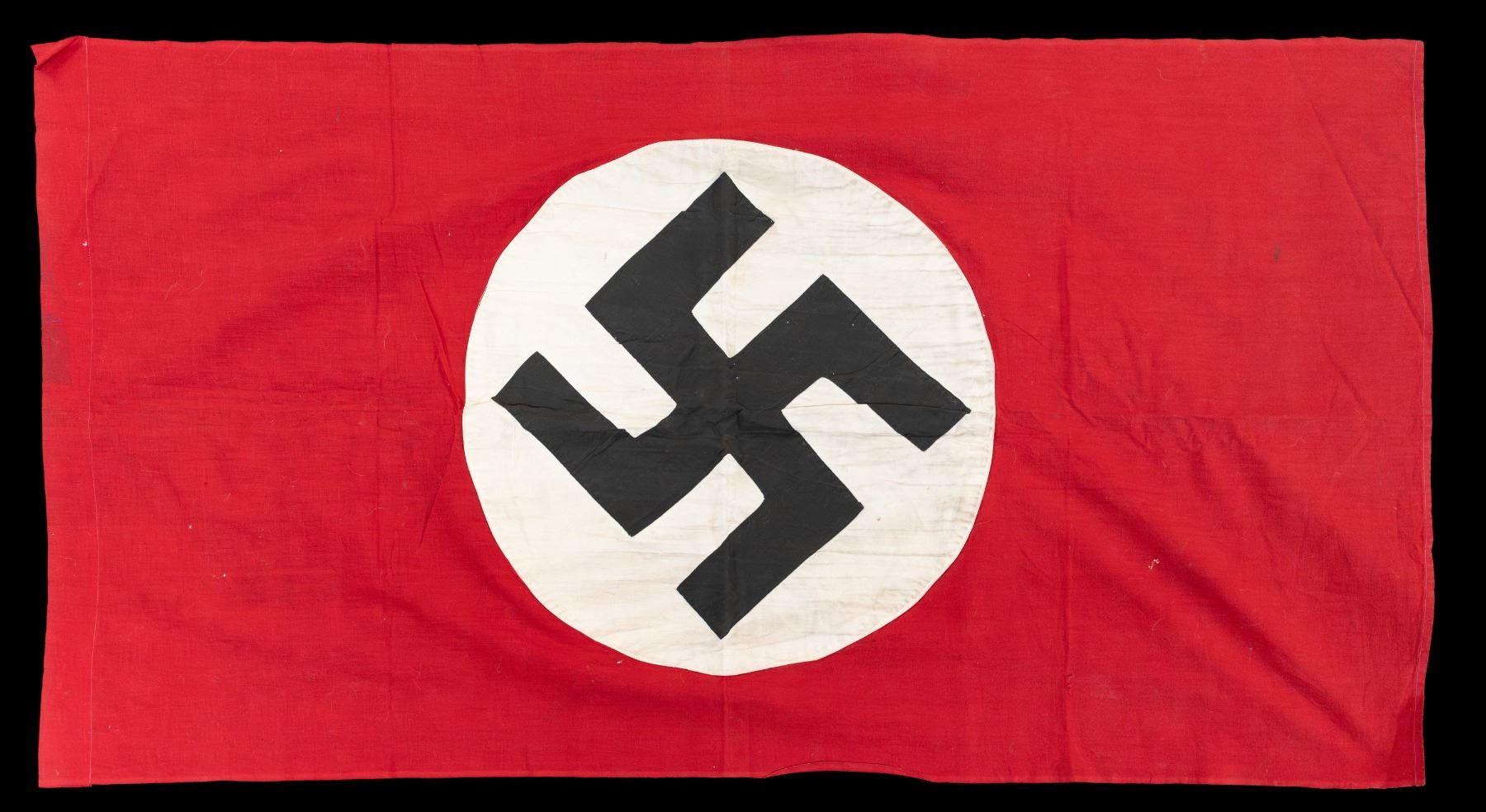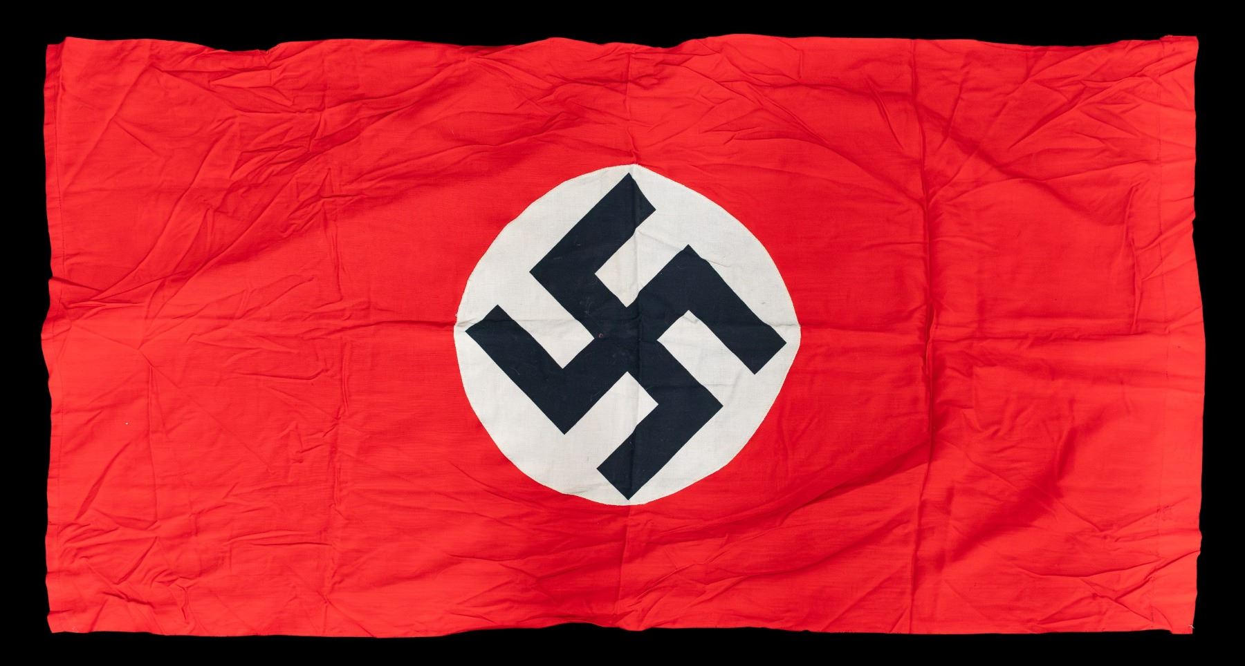 1) WWII German party flag measuring 51" x 27". 2) WWII German Party flag measuring 29 1/2" x 45 1/2". 3) WWII German Party flag measuring 29" x 57". WWII German Party banner measuring 79" x 37 1/2". CONDITION: all flags and banners show light wear. (02-25437/BF). NON-GUN. $500-750.