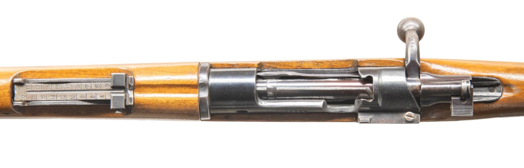 Cal. 7.62x51. S# OT-42666. Bbl. 22" with Samco import marking. Blade front sight with added white paint & protective ears. Tangent rear sight graduated to 2000m. Matching numbers on receiver, bolt handle, trigger guard & floorplate. No visible receiver ring markings. Arsenal reblue finish. Hardwood stock with left side sling provisions. Replacement cleaning rod that will not stay in channel. CONDITION: refinished stock set has added varnish with a patch repair on forend, some dings & handling marks. Metal retains 85% arsenal reblue with scattered thinning, edge wear, handling marks & light oxidation. Safety engaging but action is otherwise functional when hand cycled. Very good bore with strong rifling. (25-6593/MJC). CURIO. $250-400.
