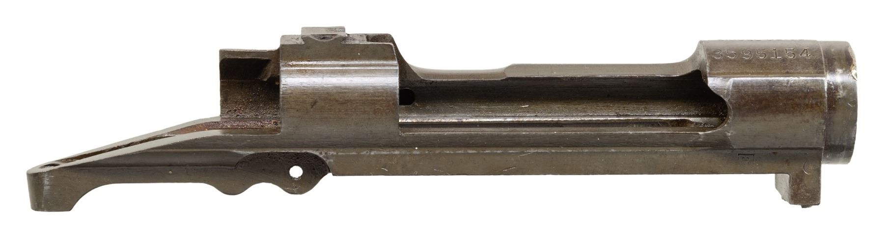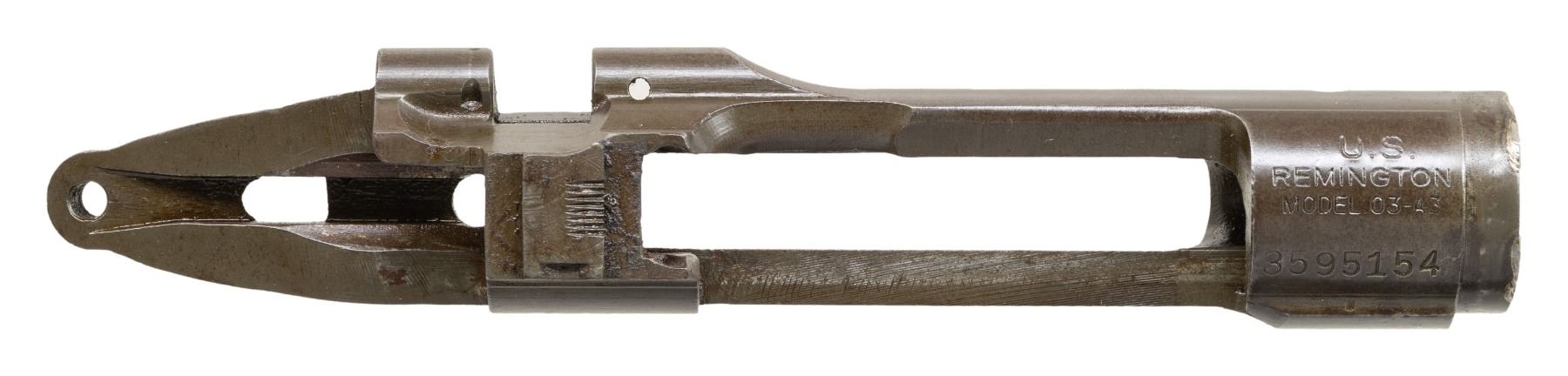S# 3595154. Receiver was re-purposed from drill rifle. Receiver ring has partially removed welds on right forward edge. Receiver is marked "U.S. / REMINGTON / MODEL 03-A3". Receiver contains no additional parts. CONDITION: receiver retains 80% of its original wartime parkerized finish. Welds remain bright. (25-6238/RW). MODERN. $100-200.