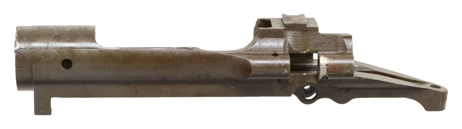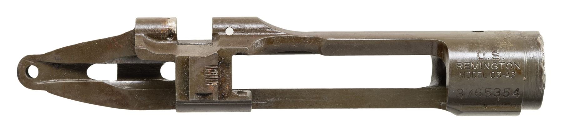 S# 3765354. Receiver likely re-purposed from drill rifle. Top forward edge of receiver ring and rear of cutoff recess have remnants of arc welding. Receiver marked on top "U.S. / REMINGTON / MODEL 03-A3". No additional parts included. CONDITION: receiver retains 75% of its original parkerized finish with moderate wear. Evidence of welding remains. (25-6243/RW). MODERN. $100-200.