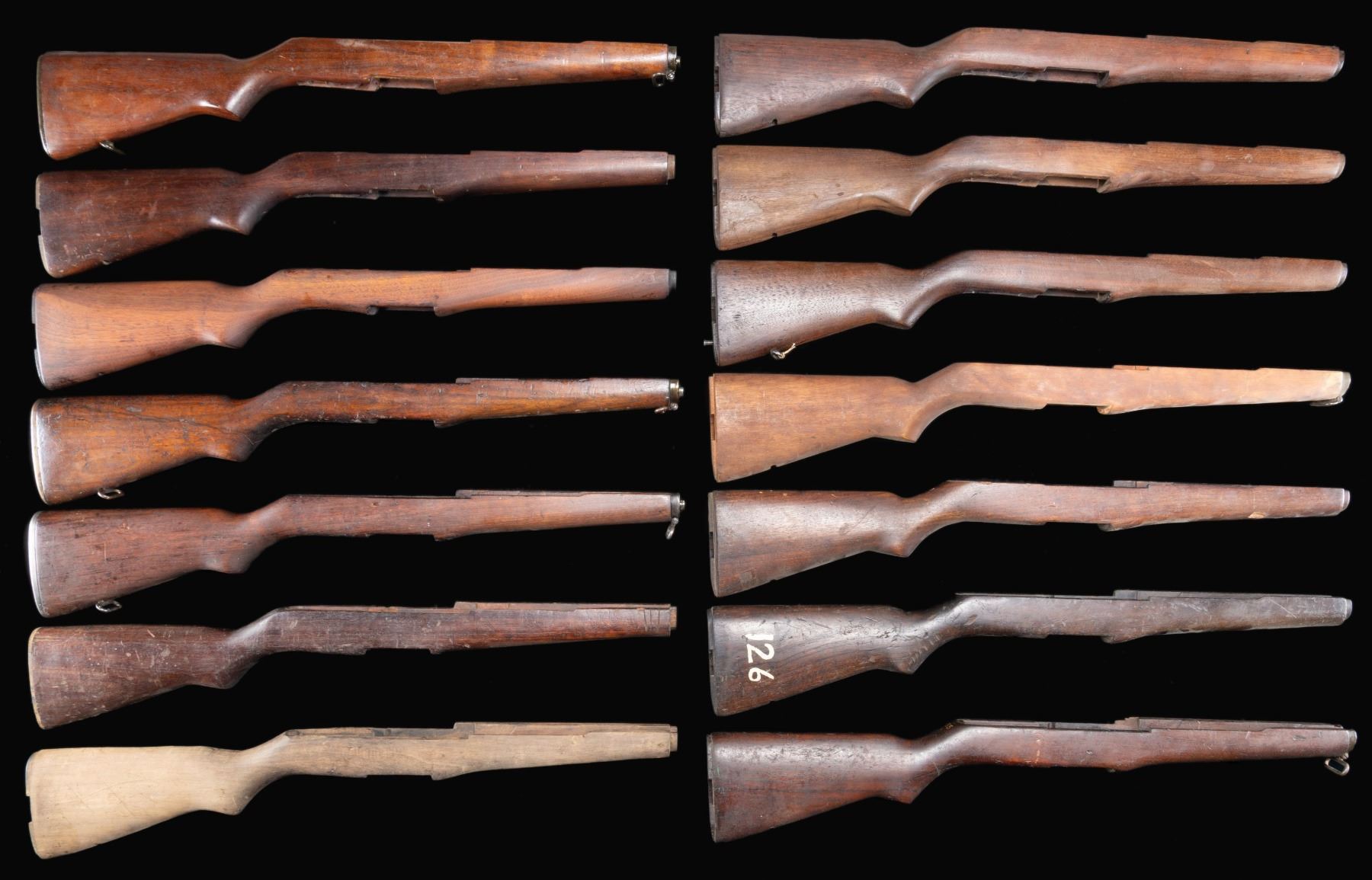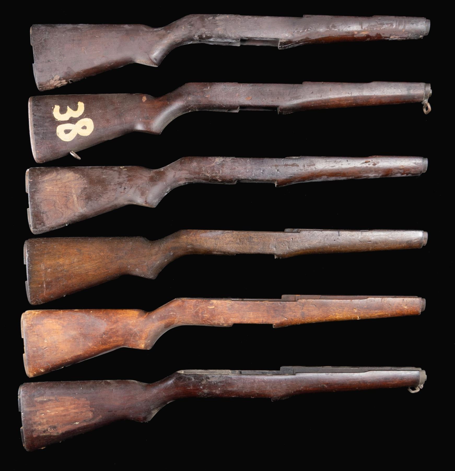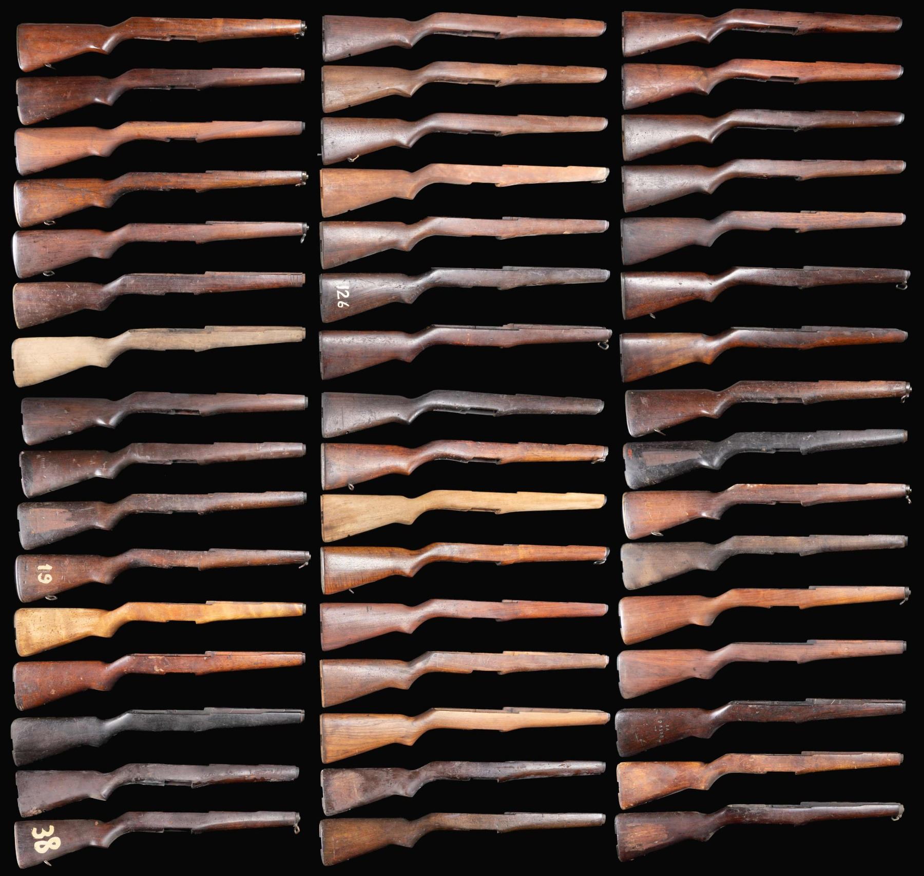 Most of these stocks appear to be of US origin & have US markings. Many of these markings will be faint due to arsenal reworking. The stocks appear to be in a generally serviceable condition in spite of their long service. Many will retain at least some of their original metal fittings, to include ferrules, swivels & buttplates. CONDITION: stocks will have extensive wear, staining & handling marks. May also have chipping or cracking. (02-24590-35/RW). NON-GUN. $1,100-1,400.