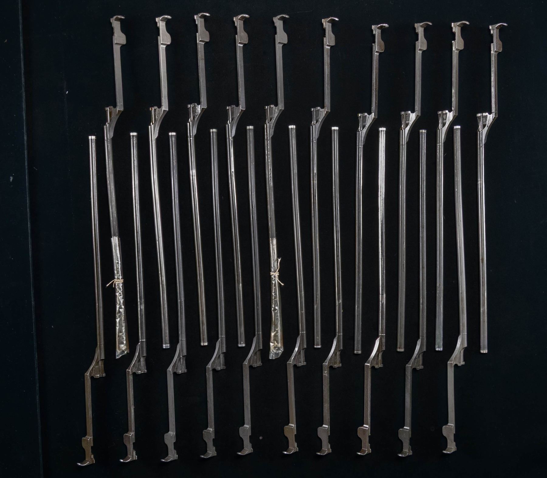RODS. No.1: Harrington & Richardson Arms. 12 operating rods, all marked w/ "HRA" & drawing number. CONDITION: 2 new & unissued, remaining 10 appear in good serviceable condition. / No.2: International Harvester Corporation. 8 operating rods, all marked "IHC" & drawing number. CONDITION: rods appear in good serviceable condition, retaining a large amount of original finish. (02-24590-21/RW). NON-GUN. $600-800.