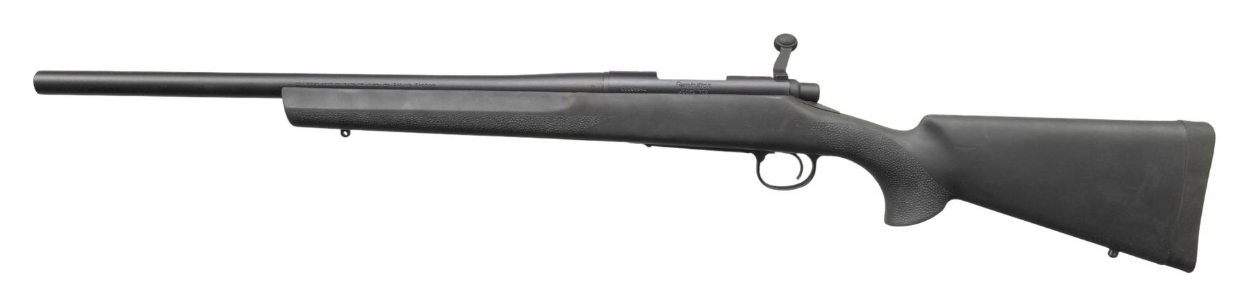 Cal. 308 Win. S# G6924948. Bbl. 20" heavy profile. Receiver factory drilled & tapped for sight mounting but no screws present. Remington order #84207 700 SPS Tactical rifle. Metal has matte black finish. X-Mark trigger. Hogue over mold black synthetic stock with bottom mounted sling studs & recoil pad. LOP: 13 3/4". UNATTACHED ACCESSORIES: matching numbered factory box with trigger lock. CONDITION: all aspects near excellent with factory hang tag present on trigger guard. (25-2846/MJC). MODERN. $600-900.